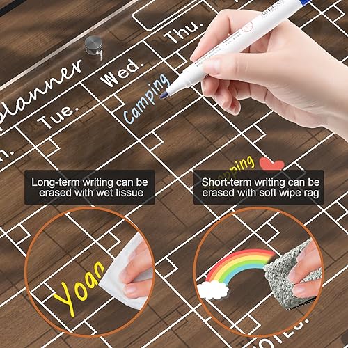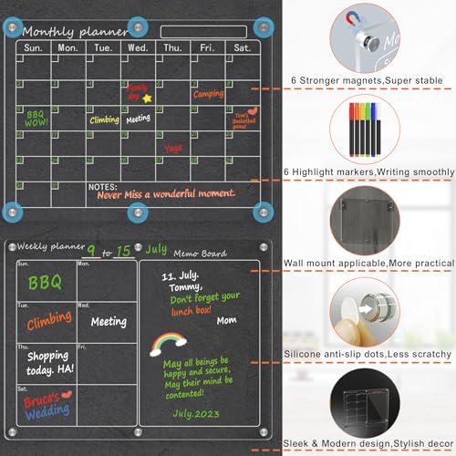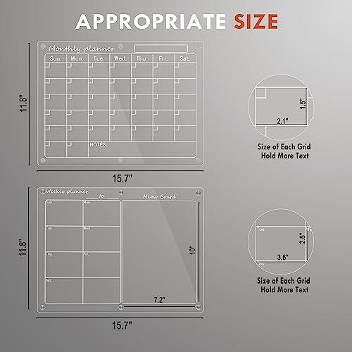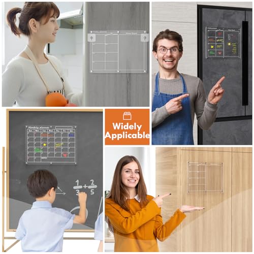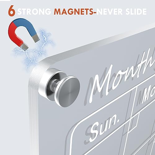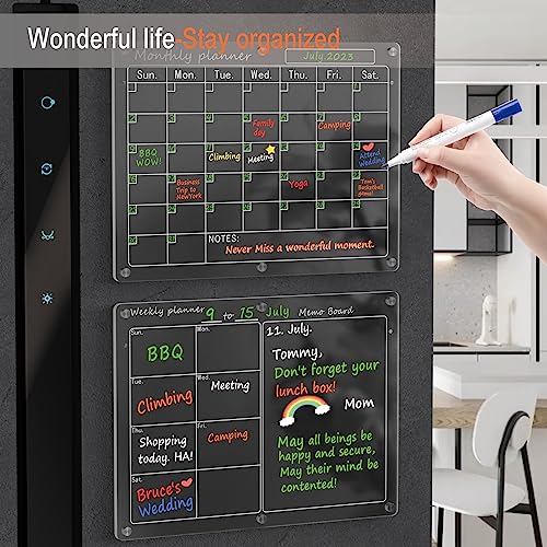 Magnetic Acrylic Calendar for Fridge,2 Pack 12″x16″ Clear Fridge Calendar Dry Erase Magnetic Planning Boards Set Includes 6 Colorful Highlight Markers,Magnetic Pen Holder and Erase Towel