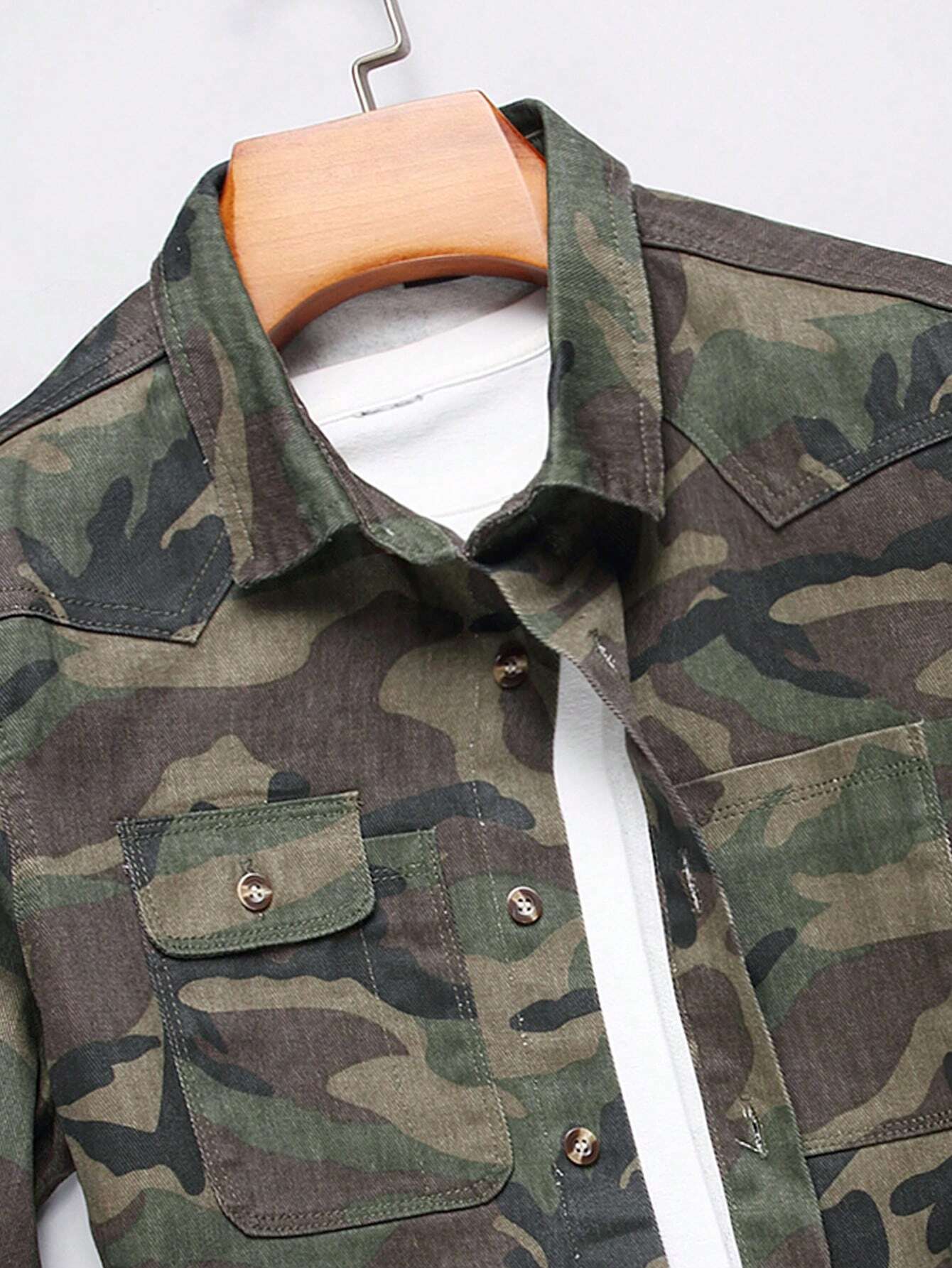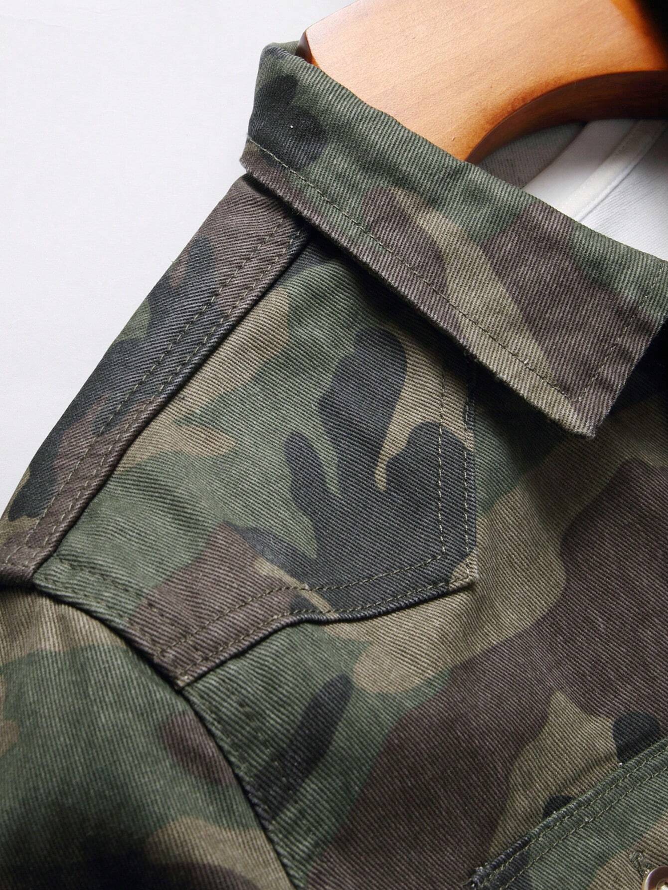 Manfinity Homme Men’s Camouflage Printed Button-Front Denim Shirt With Patch Pockets