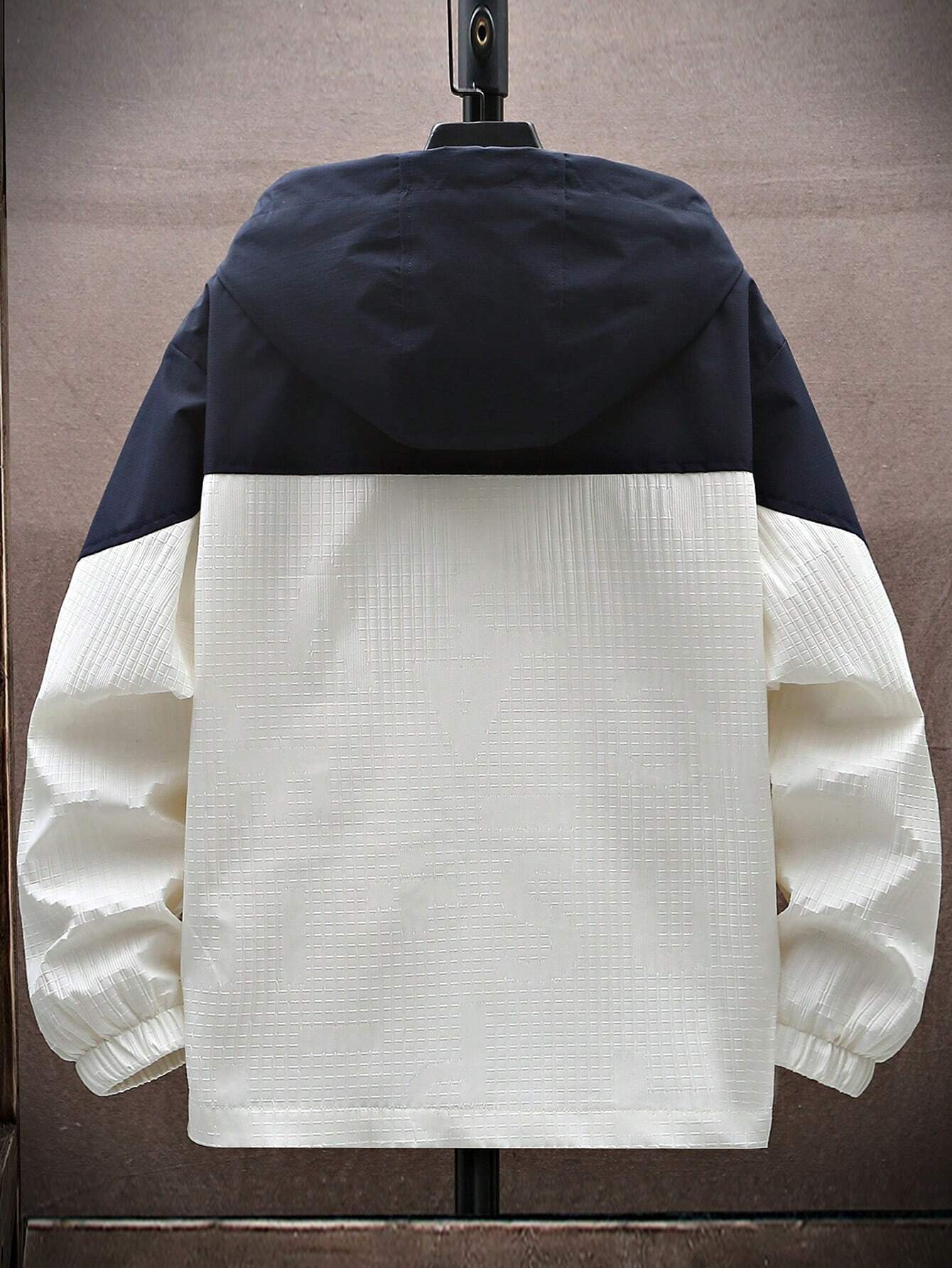 Men’s Casual Color Block Drawstring Hooded Jacket, Suitable For Spring And Autumn
