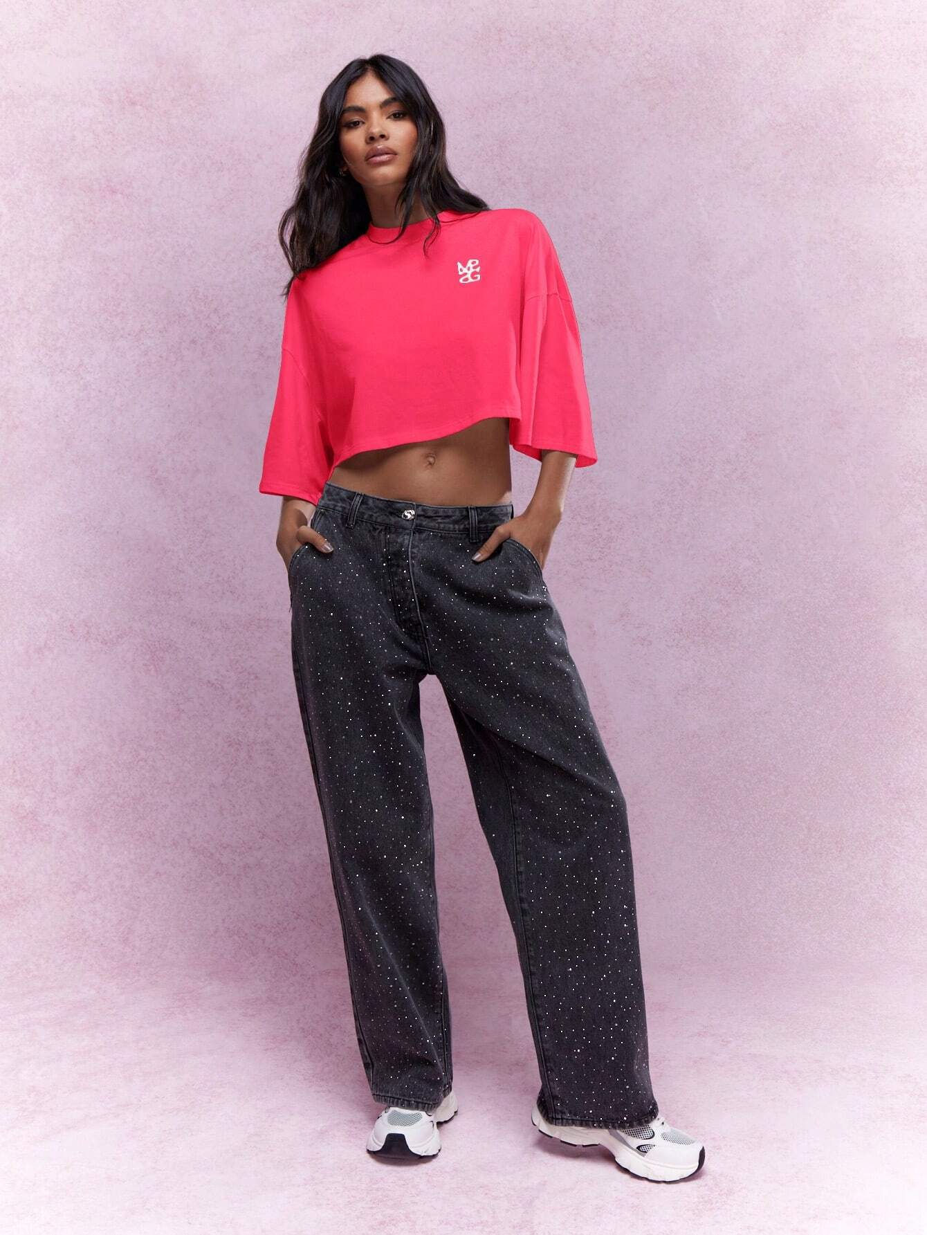 Be the first to review “MISSGUIDED Embroidered Logo Dropped Shoulder Loose Fit Crop T-Shirt”