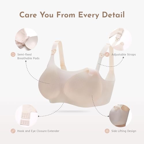 MomWills Nursing Bras for Breastfeeding, Seamless Ultra Comfort Breathable Maternity Bras, Natural Pregnancy Bras for Women