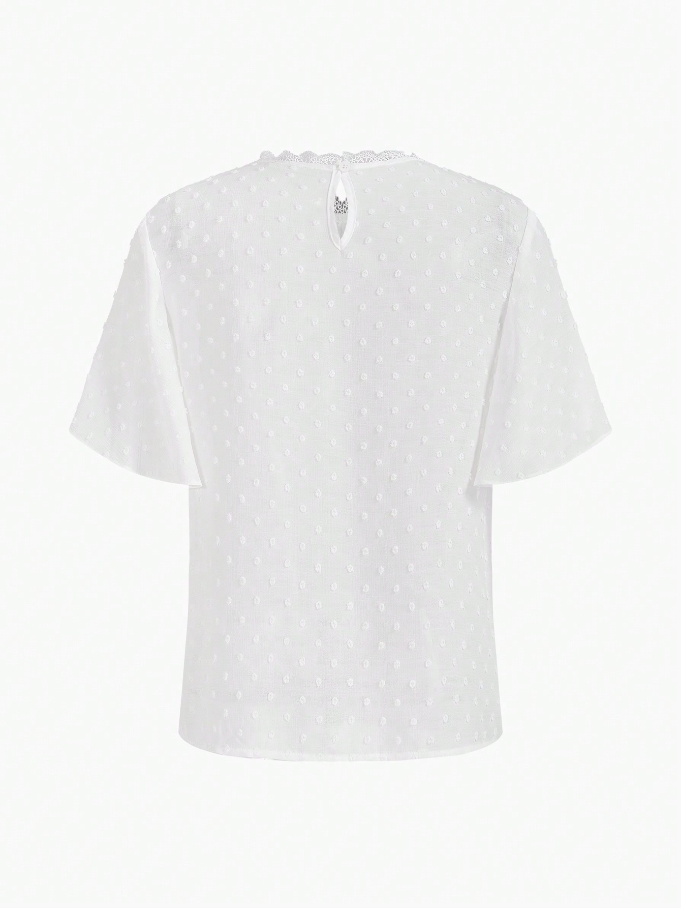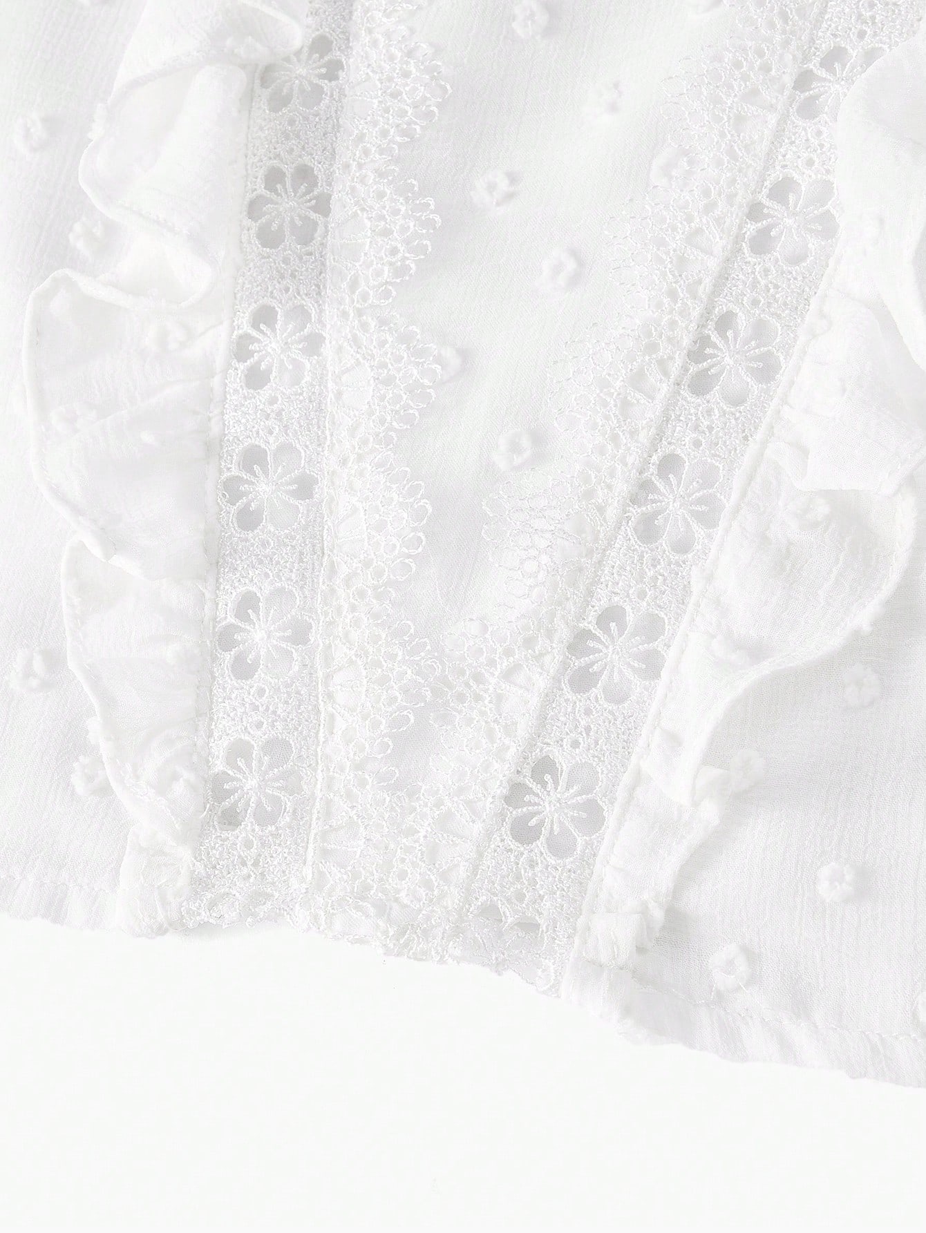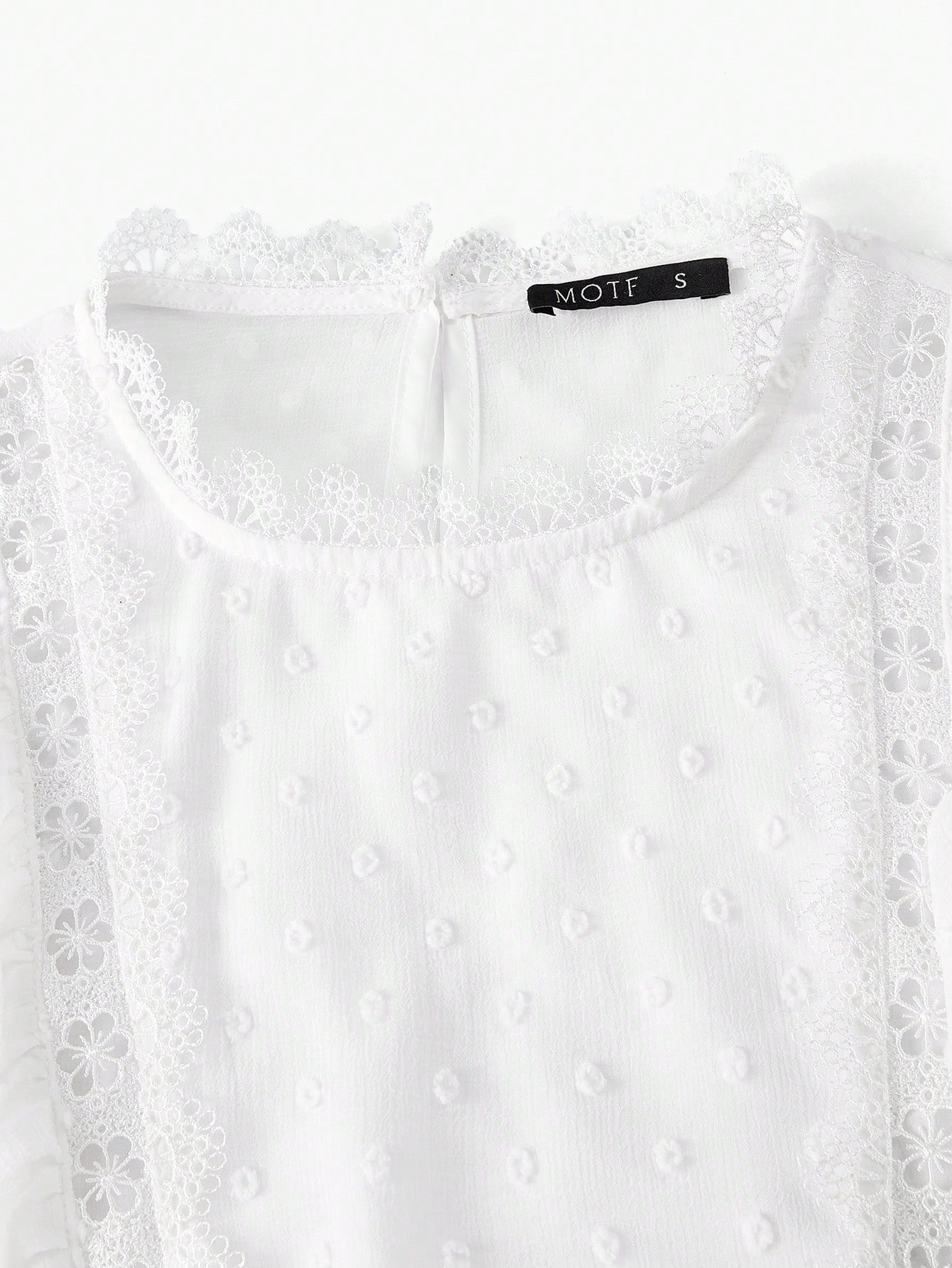 MOTF PREMIUM CHIFFON FLUTTER SLEEVE LACE INSERT RUFFLE TRIM BLOUSE