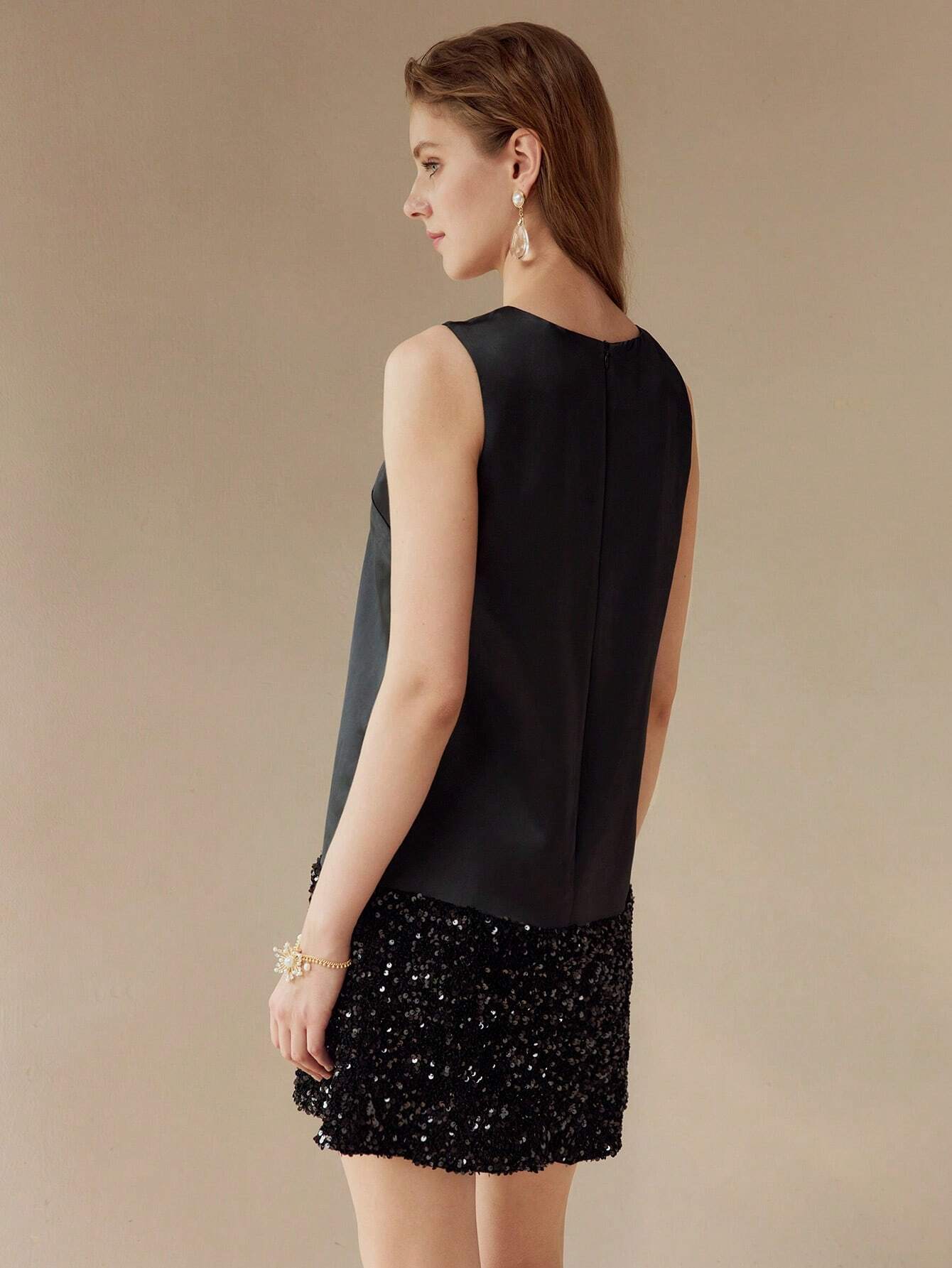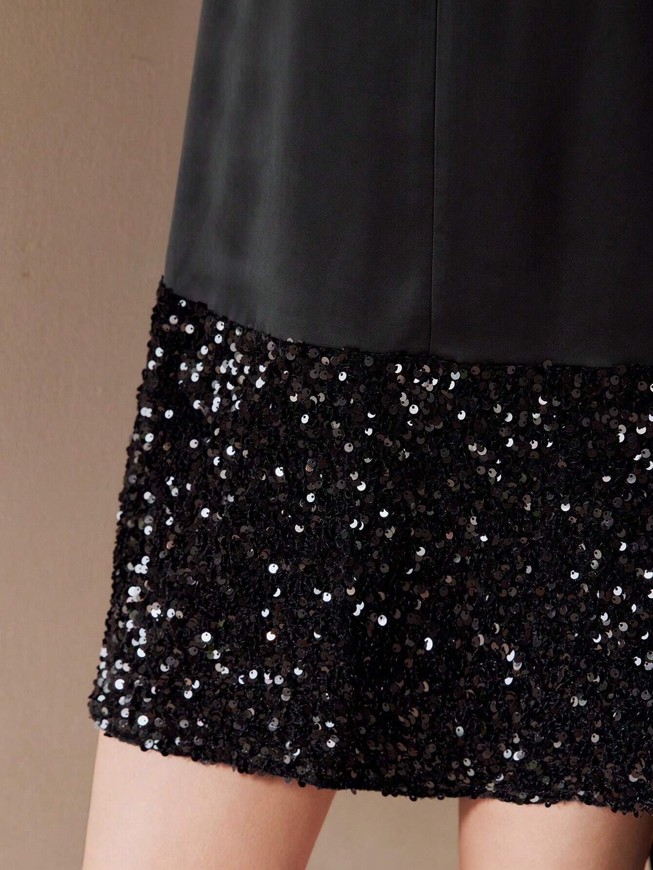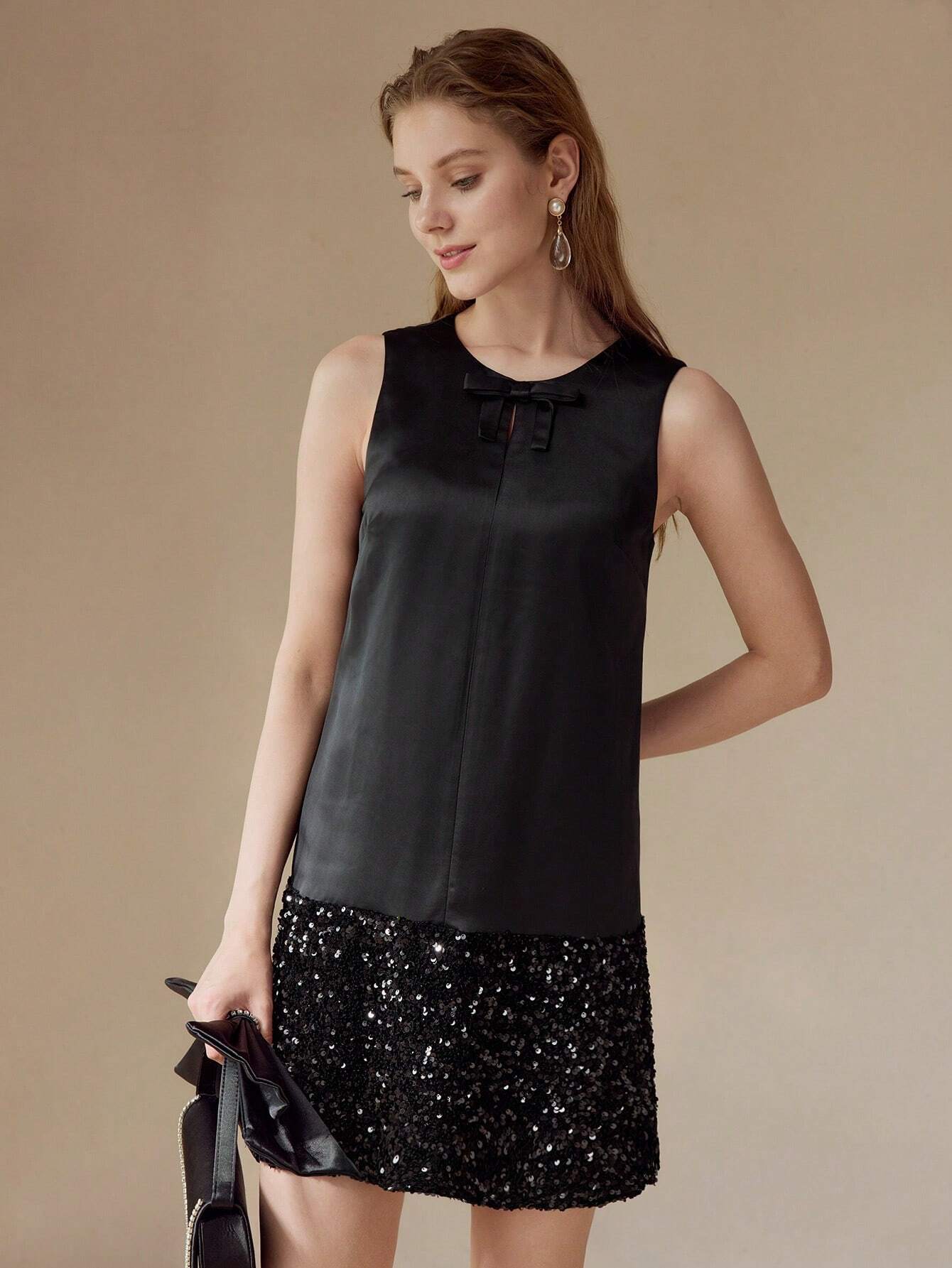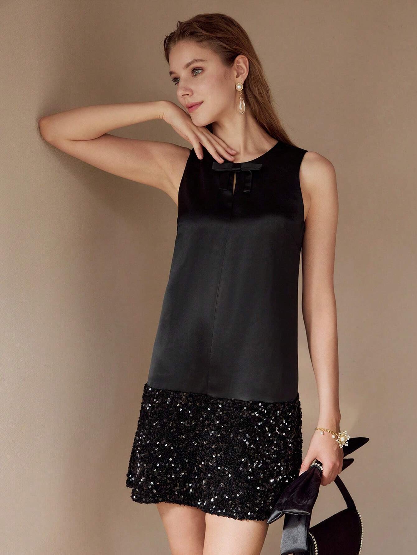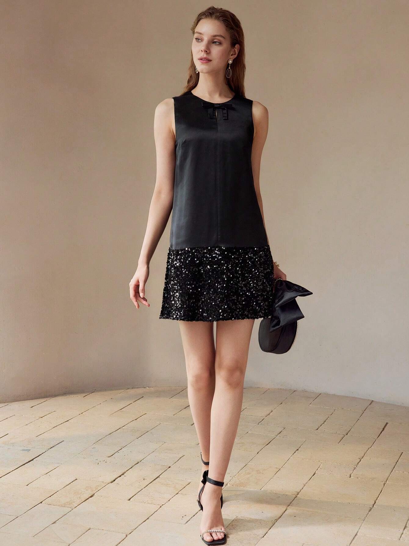 MOTF PREMIUM SOLID BOW FRONT CONTRAST SEQUIN SHORT DRESS