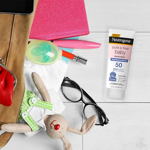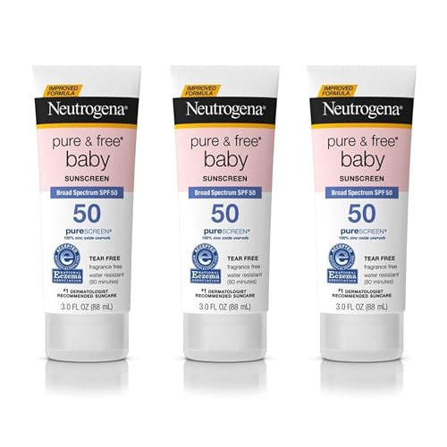 Neutrogena Pure & Free Baby Mineral Sunscreen Lotion with Broad Spectrum SPF 50 & Zinc Oxide, Water-Resistant, Hypoallergenic & Tear-Free Baby Sunscreen, Paraben-Free, Dye-Free, 3 fl. oz (Pack of 3)