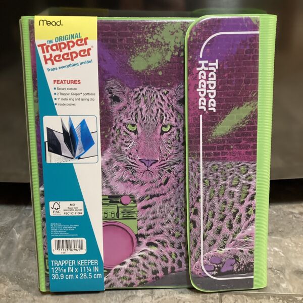 NEW Mead Original Trapper Keeper Binder Retro Portfolio Style Purple Cheetah
