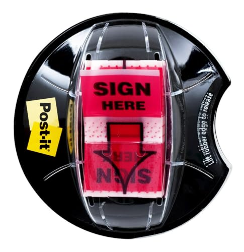 ‎Post-it Message Flags, “Sign Here”, 200/Desk Grip Dispenser, 1 Dispenser/Pack, 1 in Wide, Red (680-HVSHR)