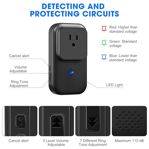 Power Failure Alarm with LED Indicator,80-110dB Adjustable Freezer Alarm with 7Siren,Power Loss Alarm with Voltage Test,Power Outage Alarm Perfect for GFI/GFCI Trips,Refrigerator (1 Pack)