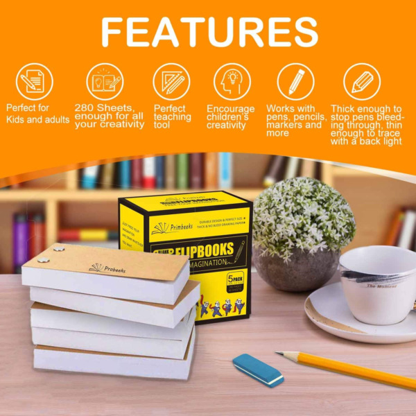 PRIMBEEKS Premium Blank Flip Books Paper with Holes, 280 Sheets 560 Pages No – x