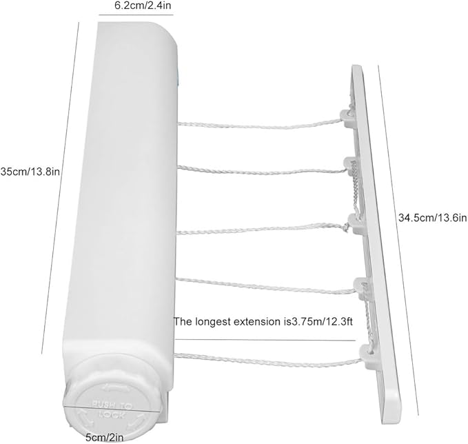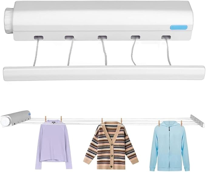 Retractable Clothesline, Outdoor Heavy Duty Adjustable Cloth Hanger Rope, Plastic Clothes Line Automatic Telescopic Drying Rack, Wall Mounted Clothes Hanging Line for Indoor Outdoor (5 Lines)