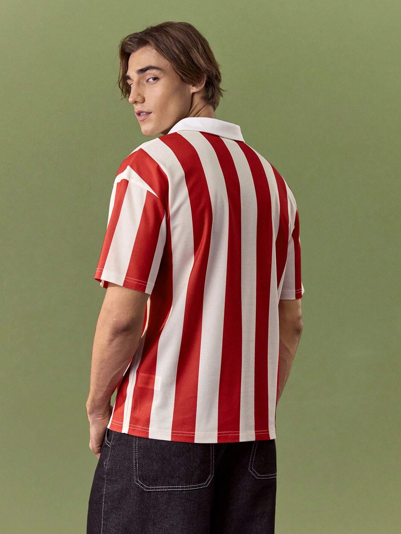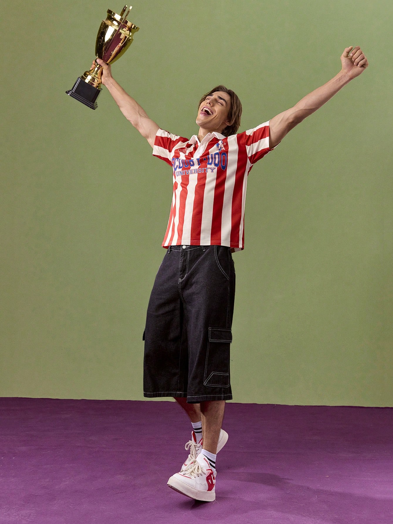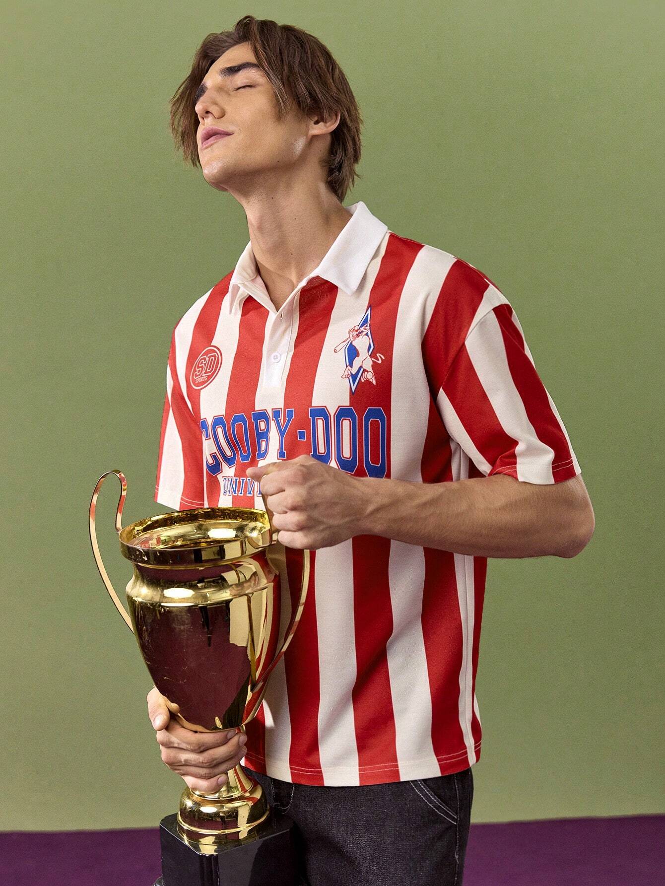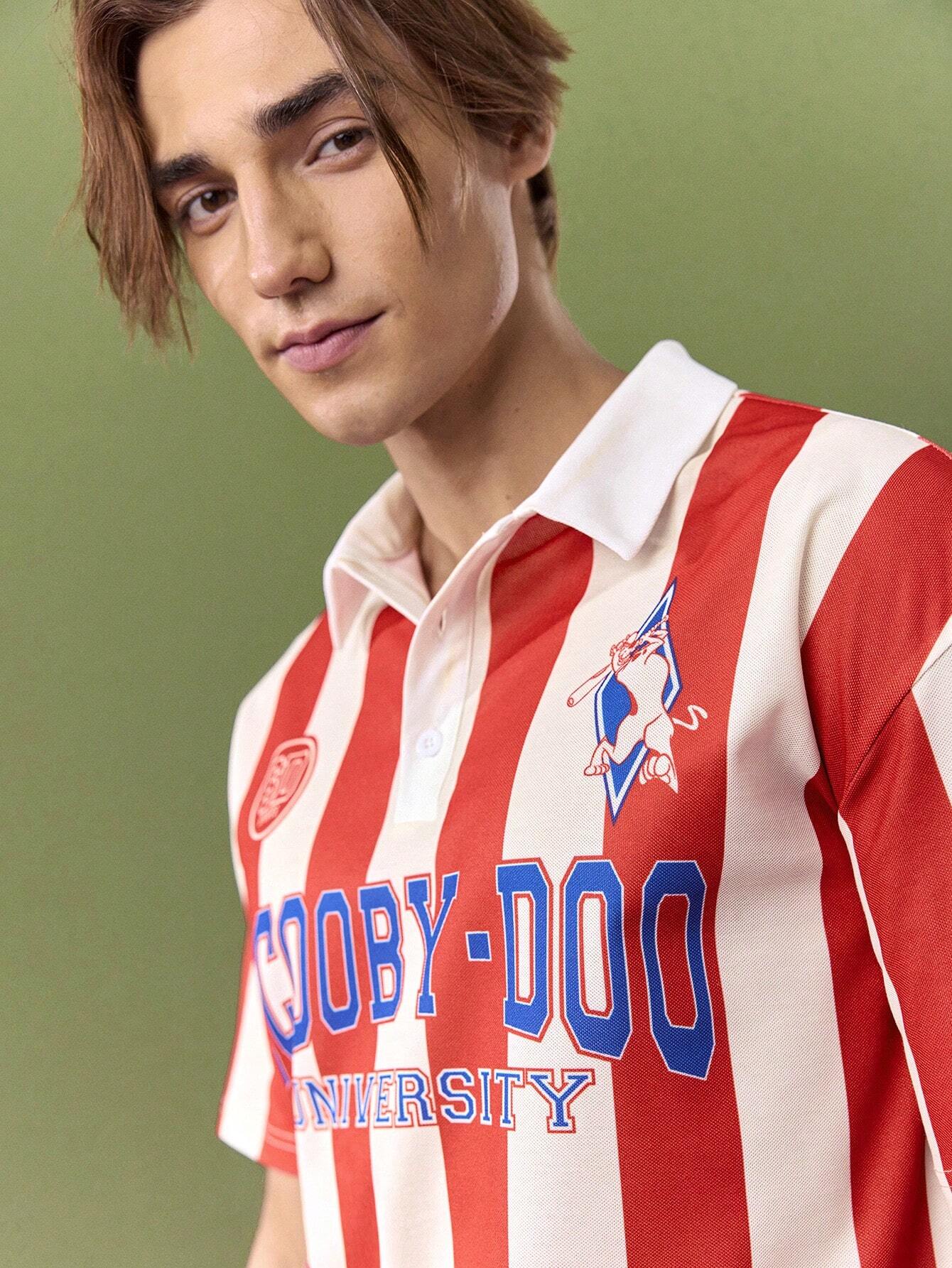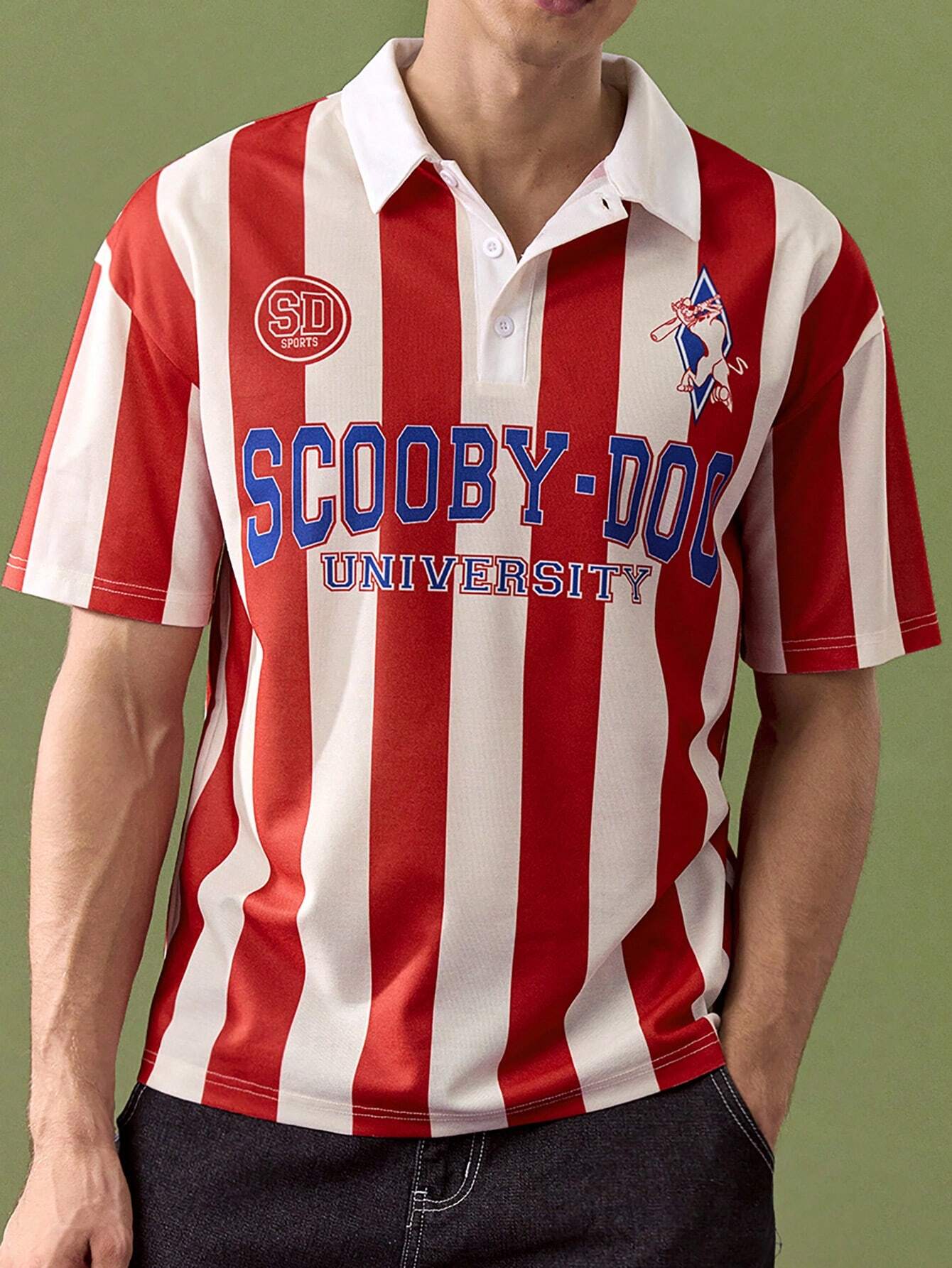 SCOOBY-DOO X SHEIN Men’s Loose Knitted Retro College Style Printed Color-Block Striped Short Sleeve Polo Shirt