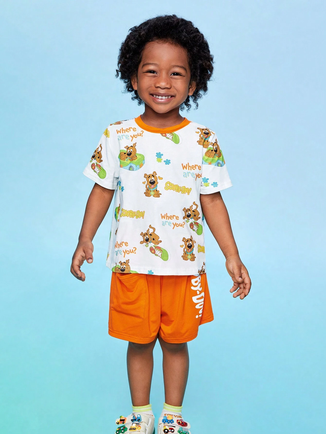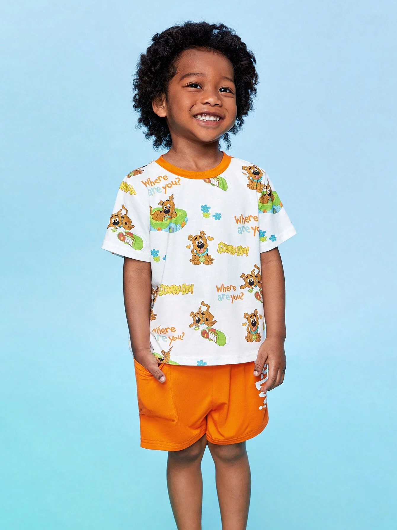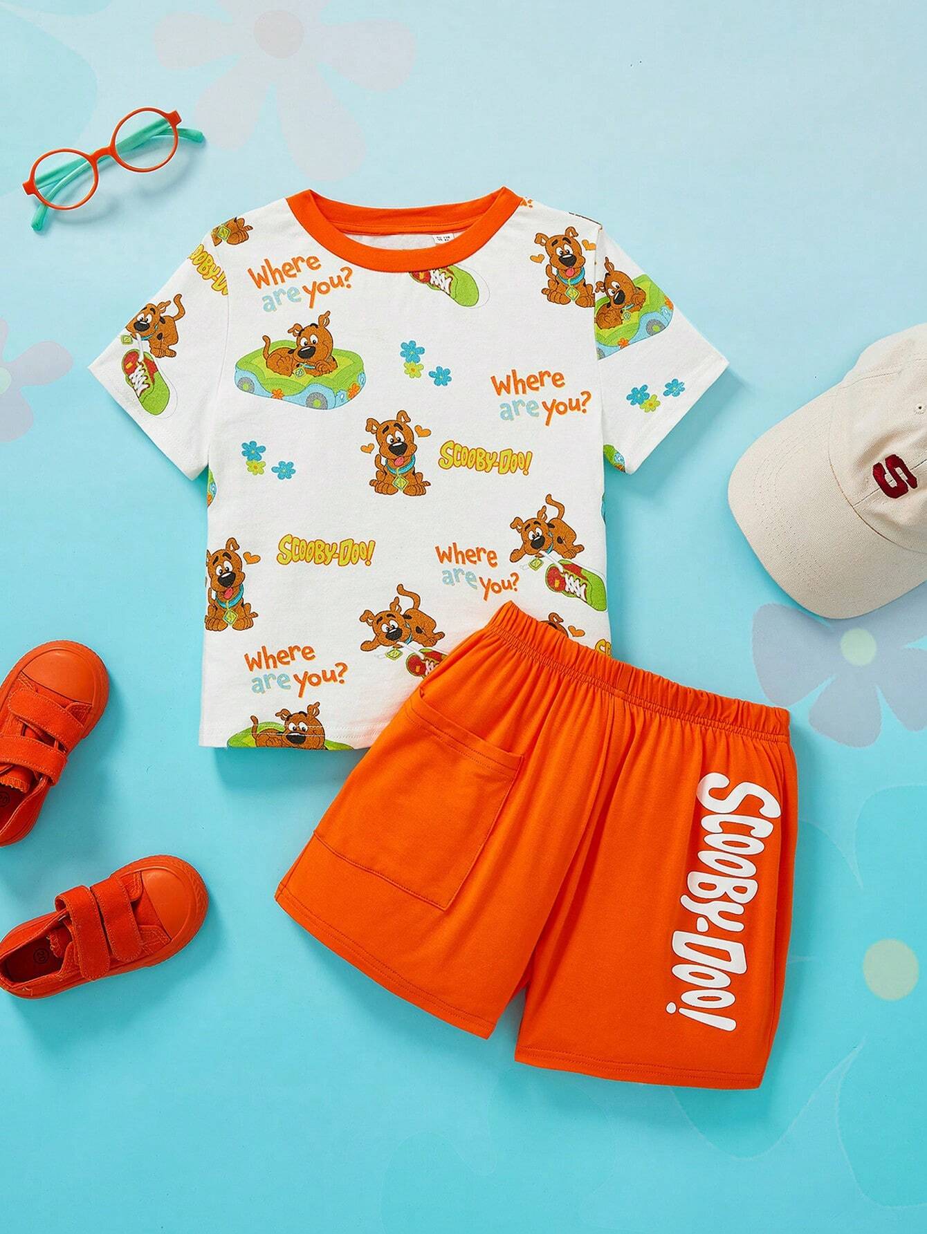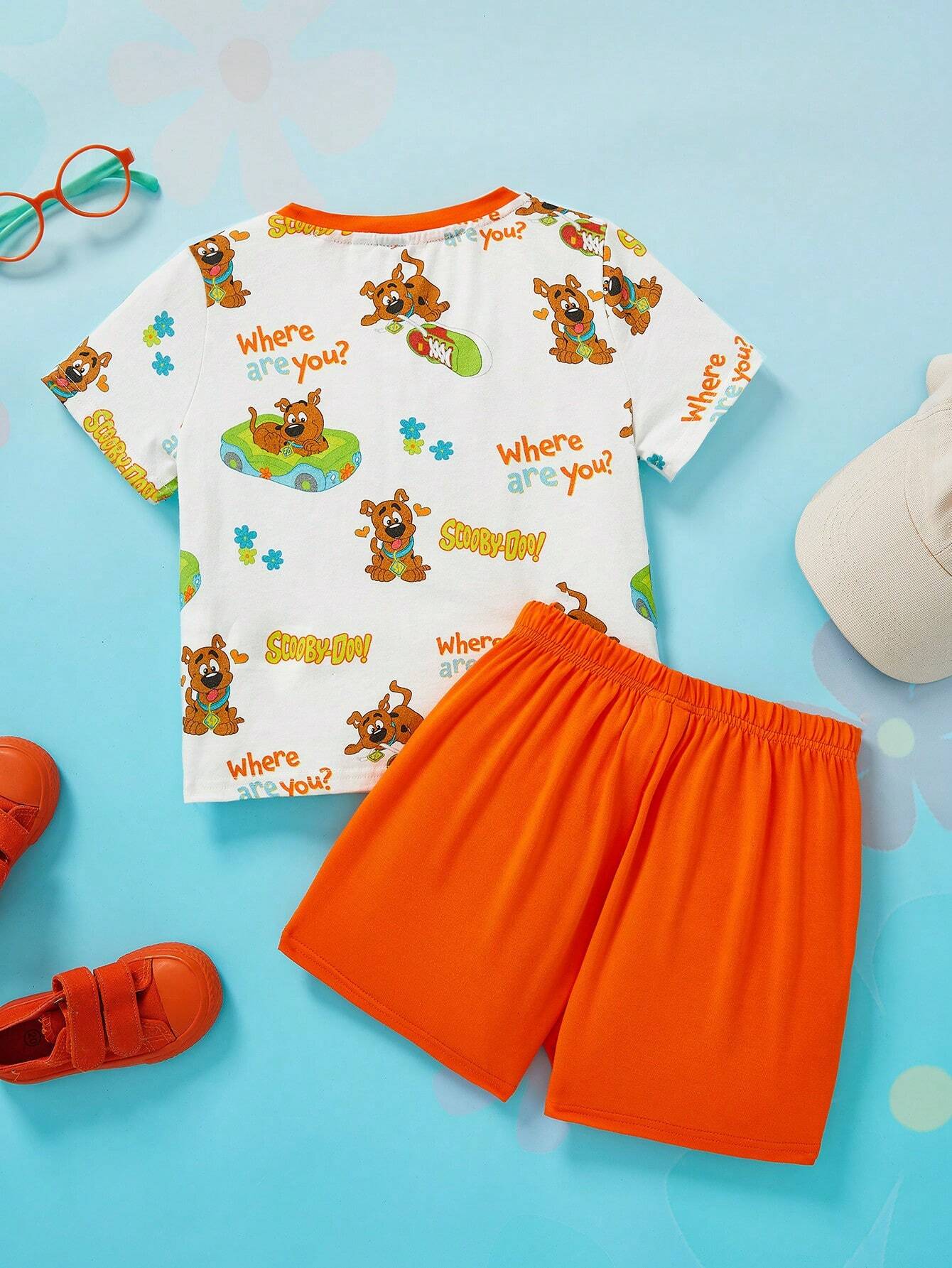 SCOOBY-DOO X SHEIN Young Boy Cartoon And Letter Graphic Tee And Shorts Set