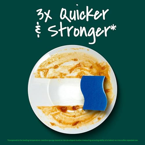 When I saw these, I grabbed them as it is a very well-known namebrand for fantastic price. I love that. The fact that you could use it as a sponge as well as a scrubber.They work well getting the food, off the plate or pot without scratching. They are also able to be put into the dishwasher which will increase the life of the sponge.A bonus is my kitchen is blue so these match . Not that it really matters but it looks pretty !