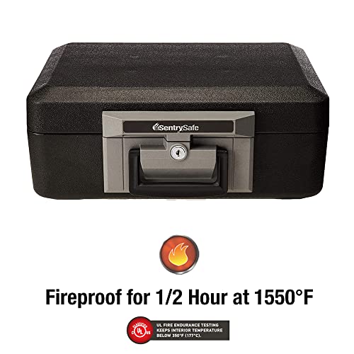 SentrySafe Fireproof Safe Box with Key Lock, Chest Safe with Carrying Handle to Secure Money, Jewelry, Documents, 0.25 Cubic Feet, 6.3 x 15.3 x 12.1 Inches, 1160