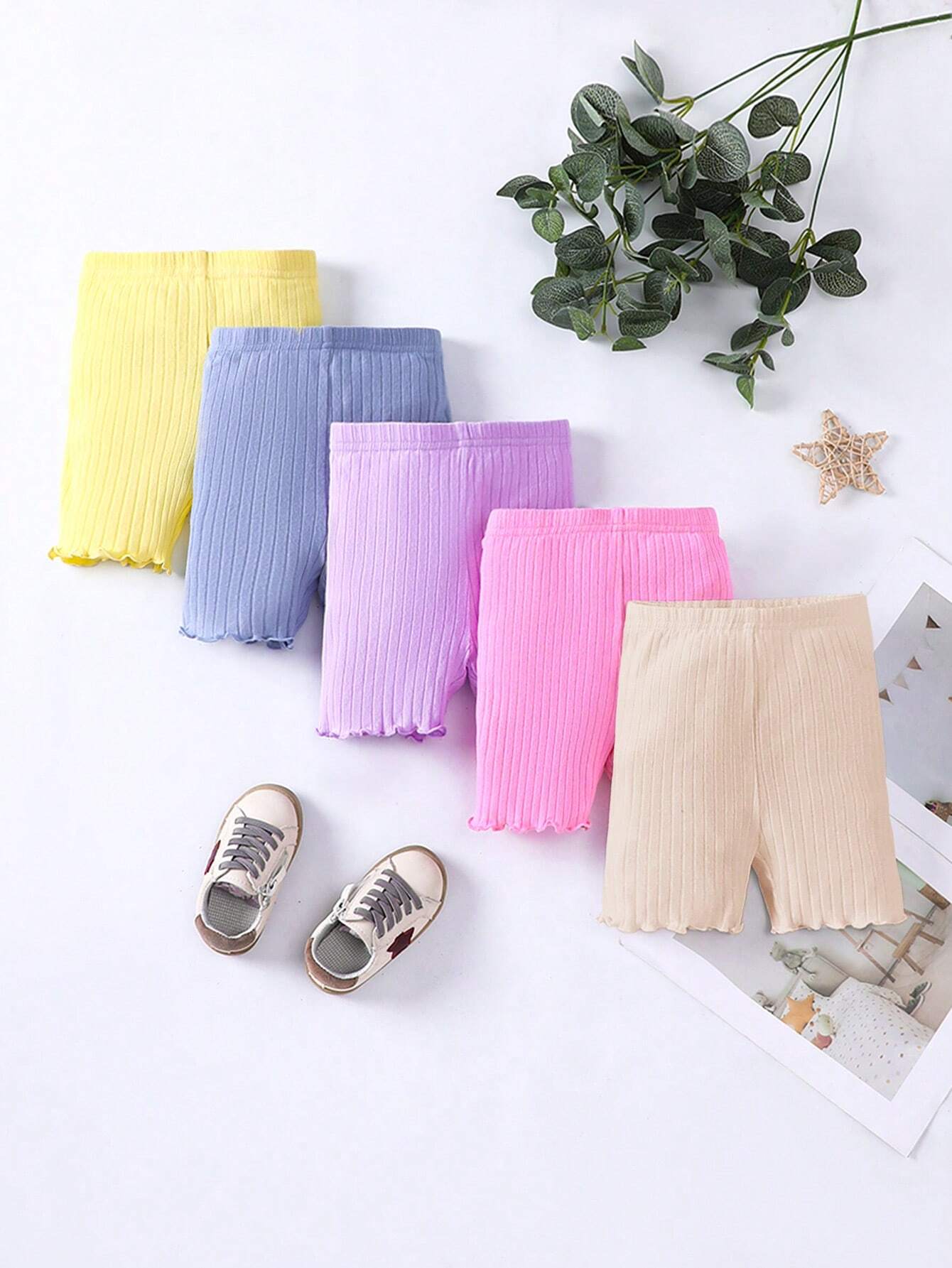 SHEIN 5pcs Baby Girl Casual Knitted Solid Color Elastic Waist Shorts Set