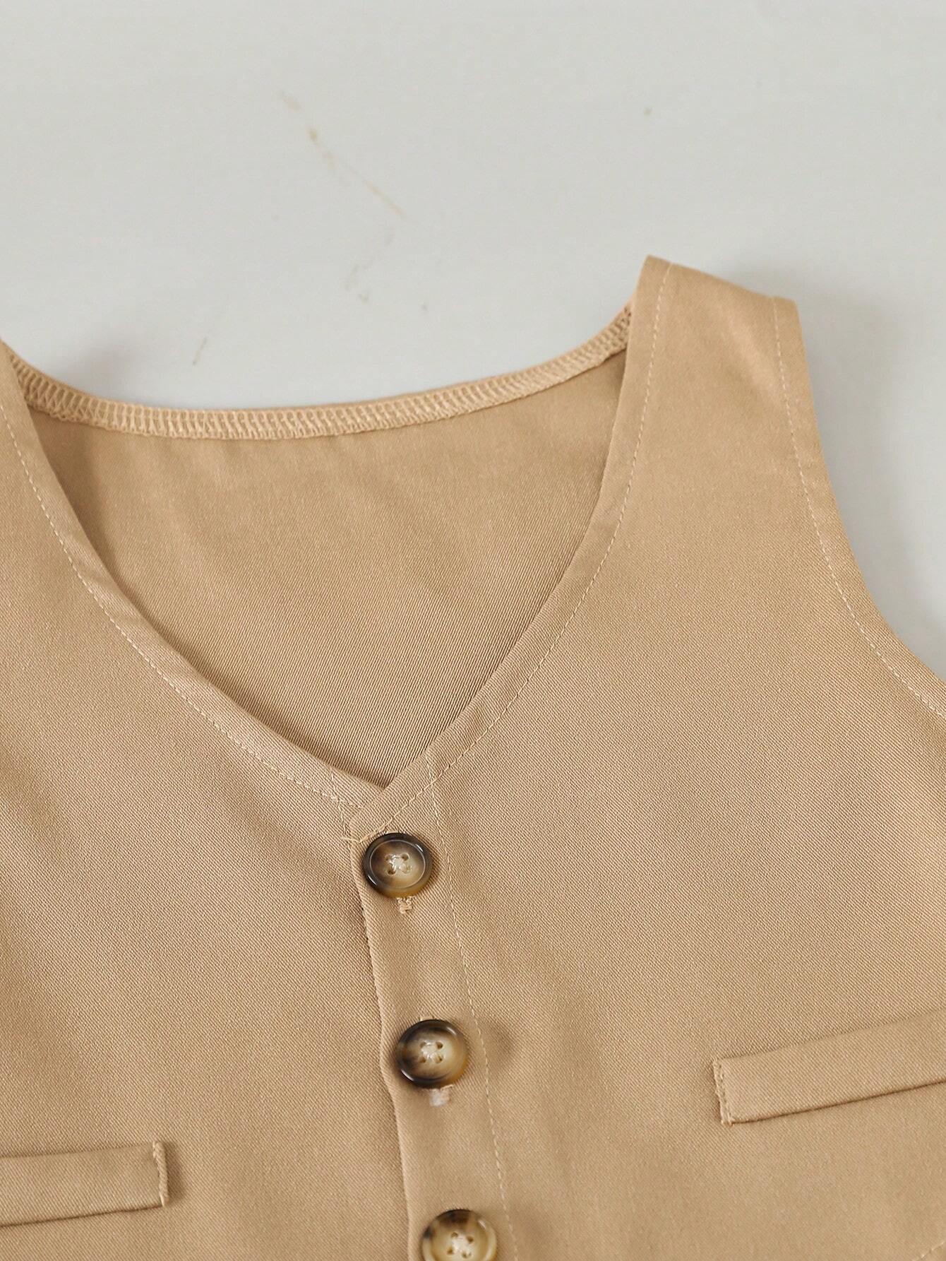 SHEIN Baby Boy Bow Front Shirt & Vest Jacket & Suspender Shorts & Hat Set