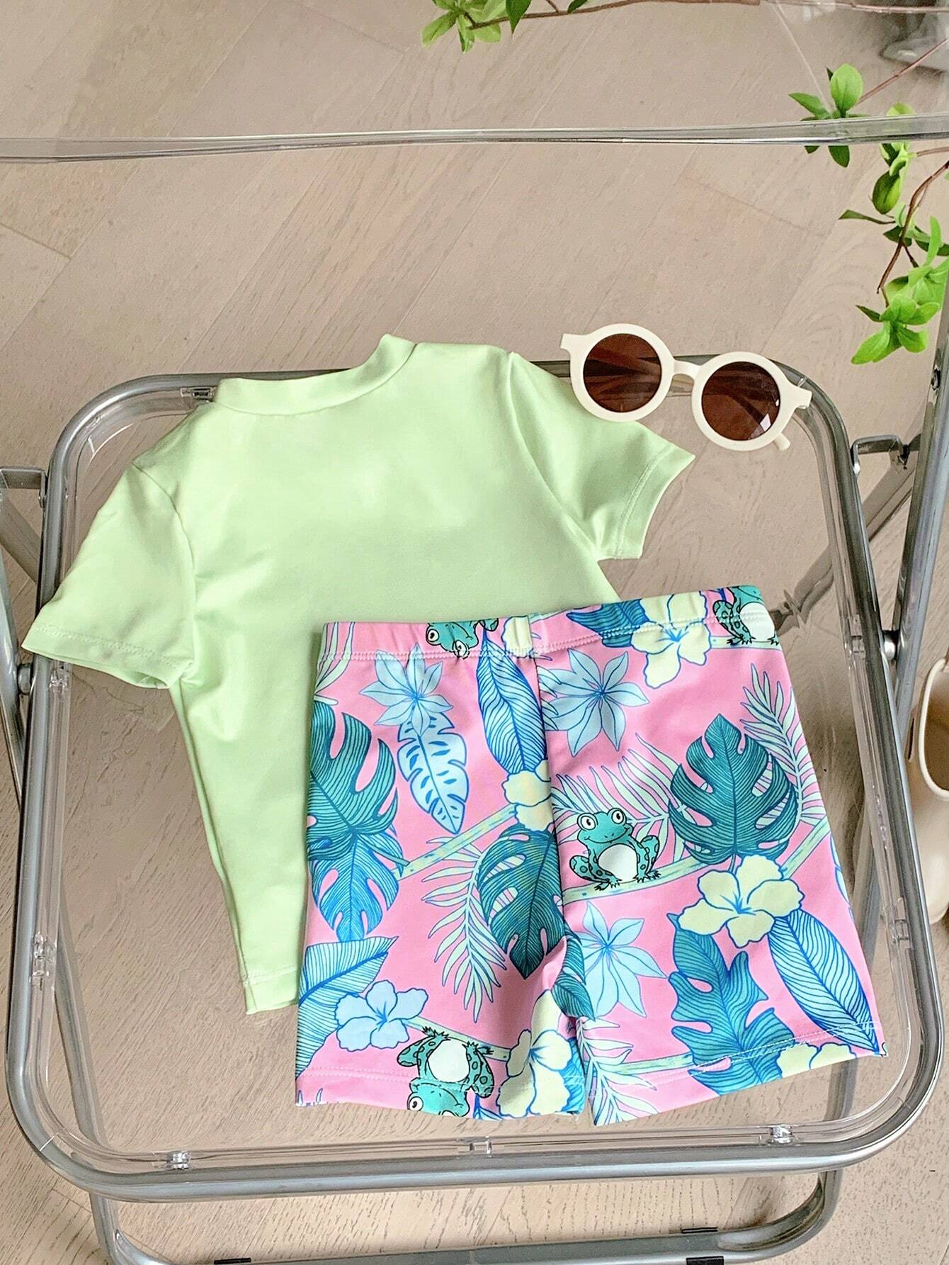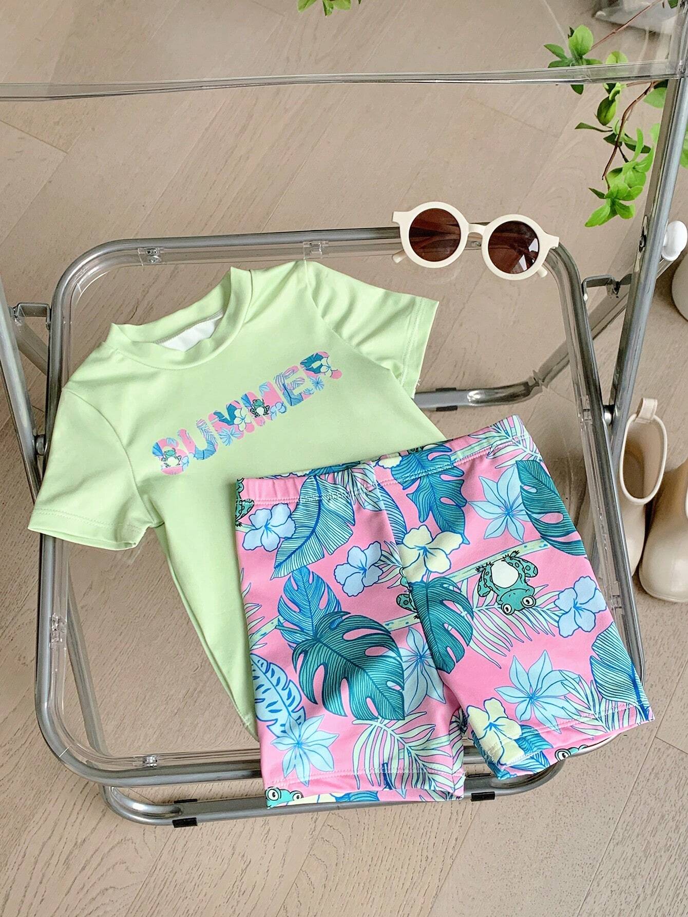SHEIN Baby Boy/Girl Elastic Knit Casual Top And Pants Set