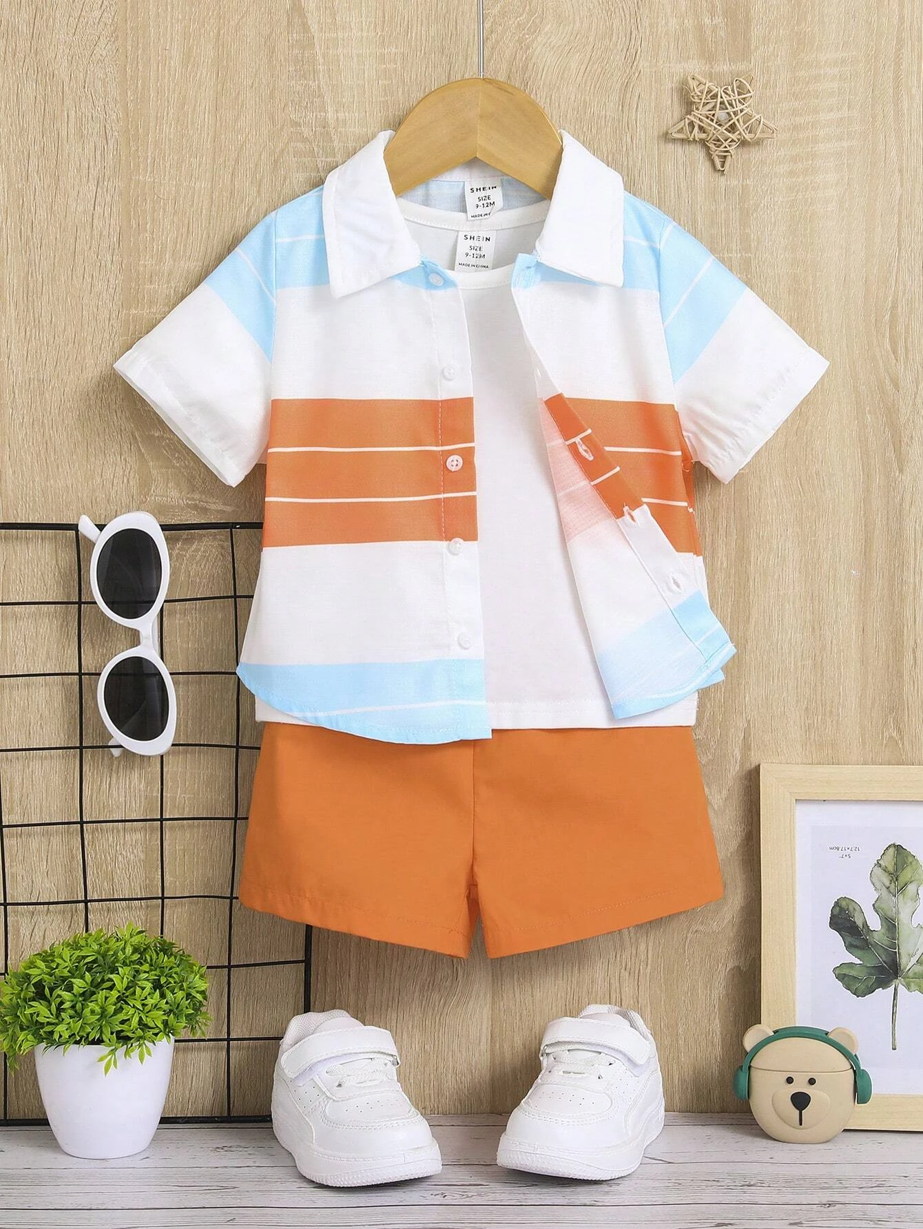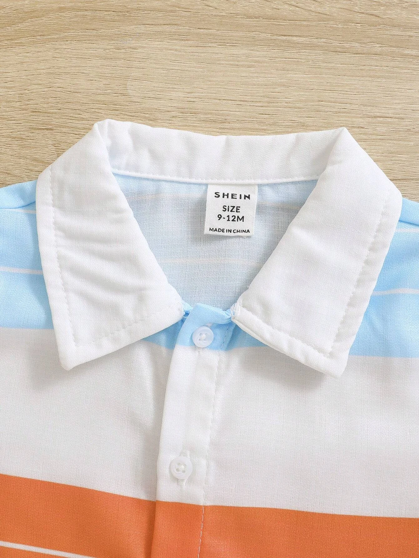 SHEIN Baby Boy Striped Print Shirt & Shorts Without Tee