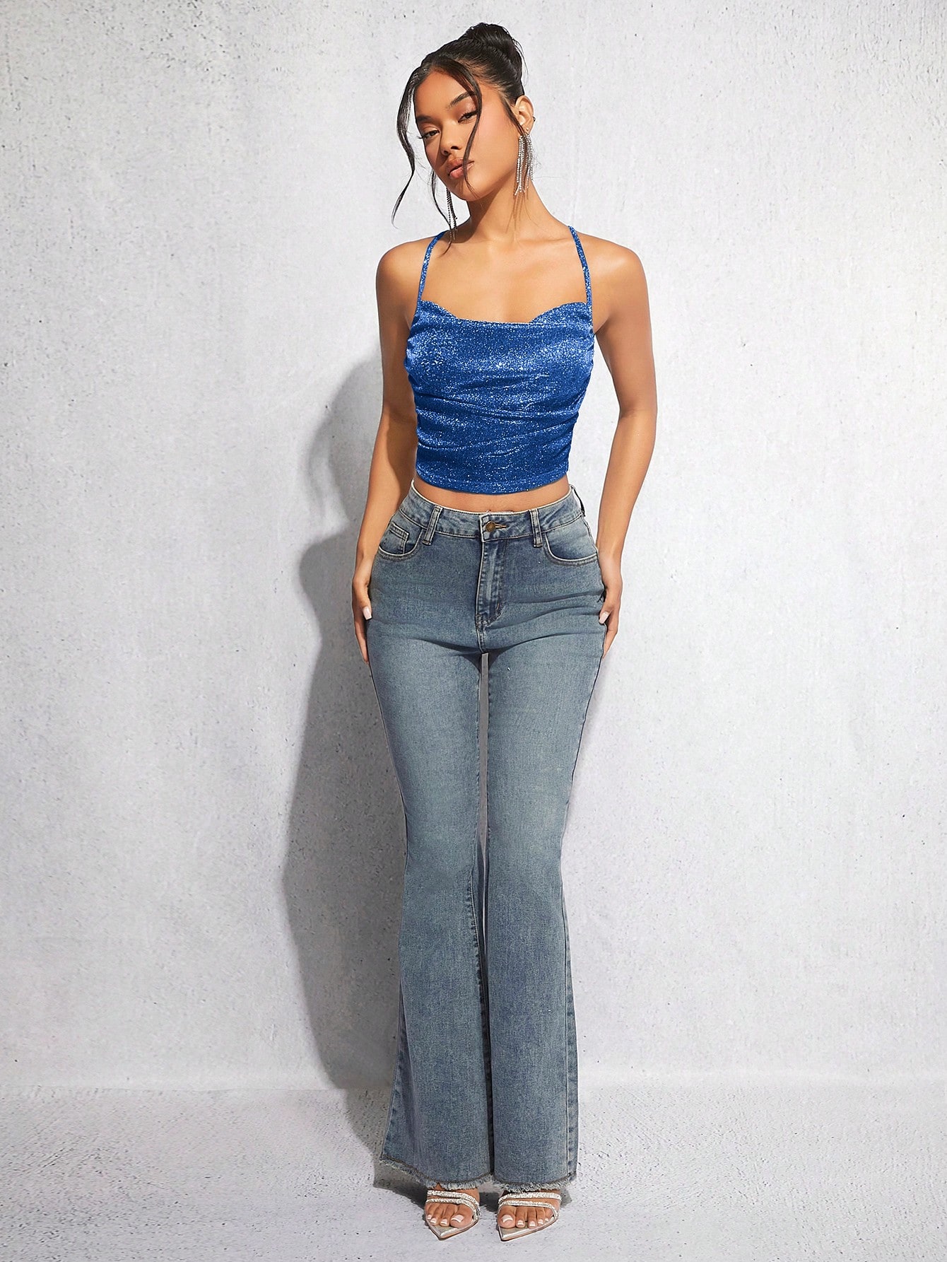 SHEIN BAE Draped Crisscross Backless Ruched Glitter Cami Top
