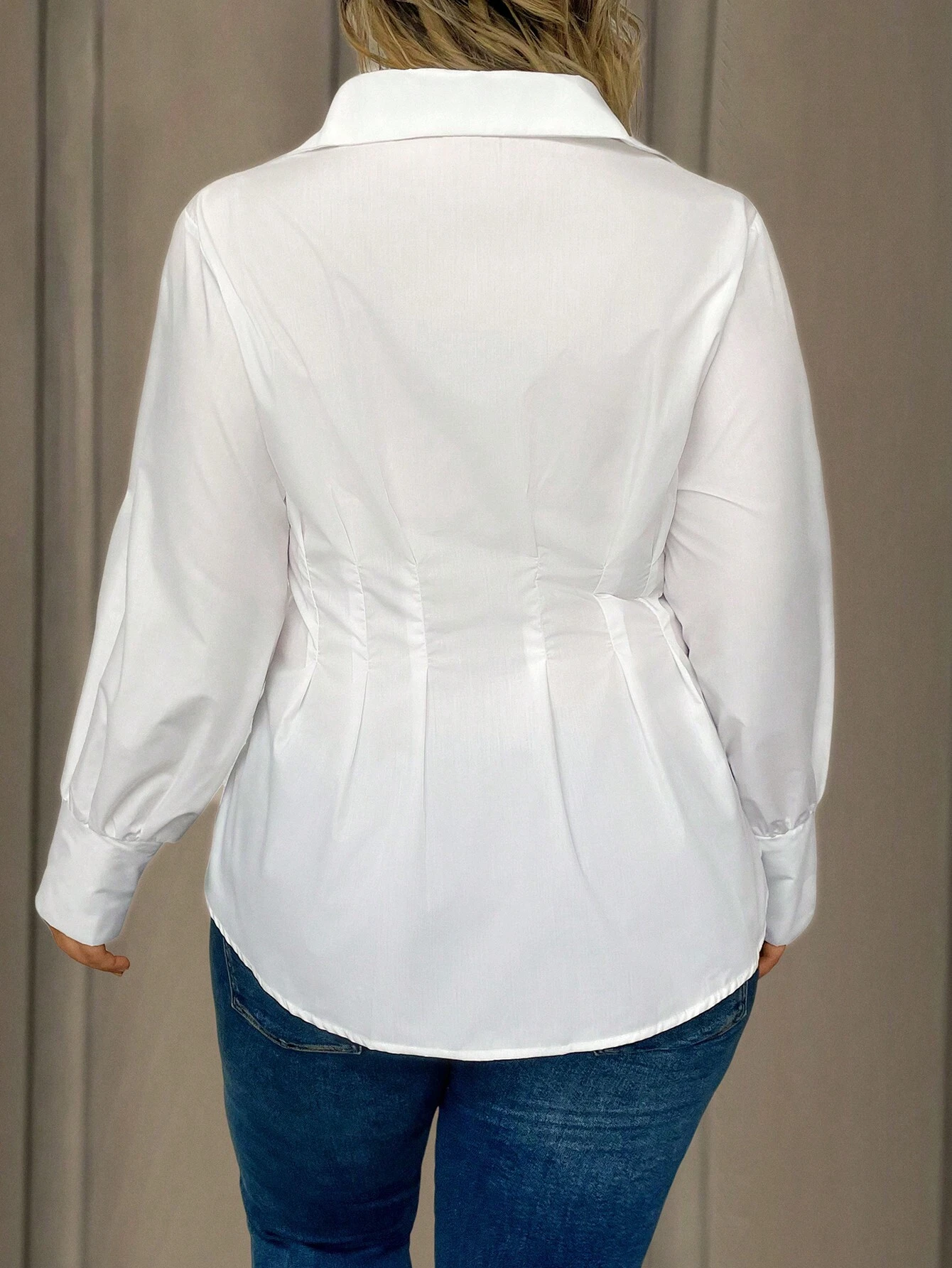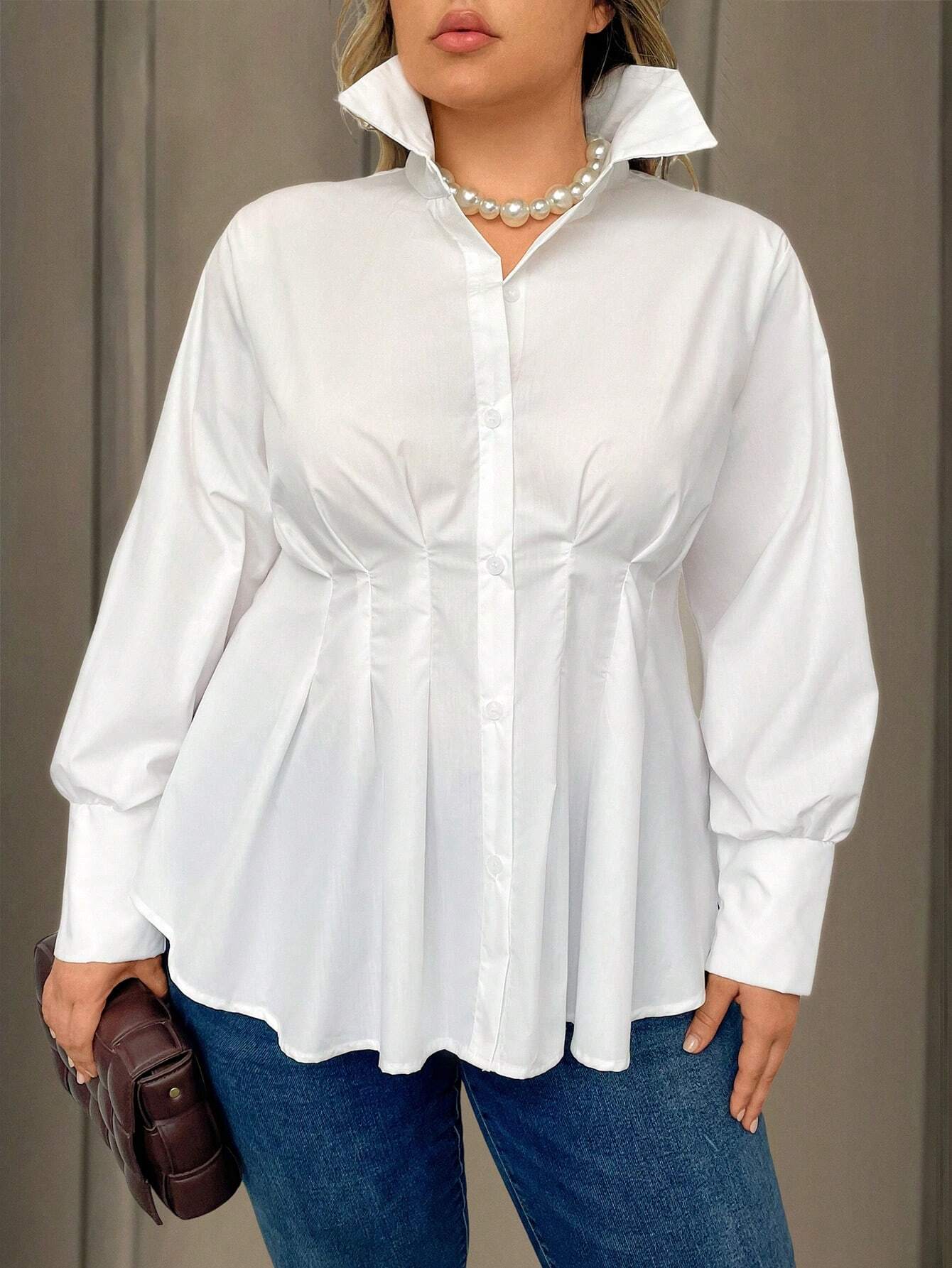 SHEIN Clasi Plus Size Lantern Sleeve Solid Color Shirt