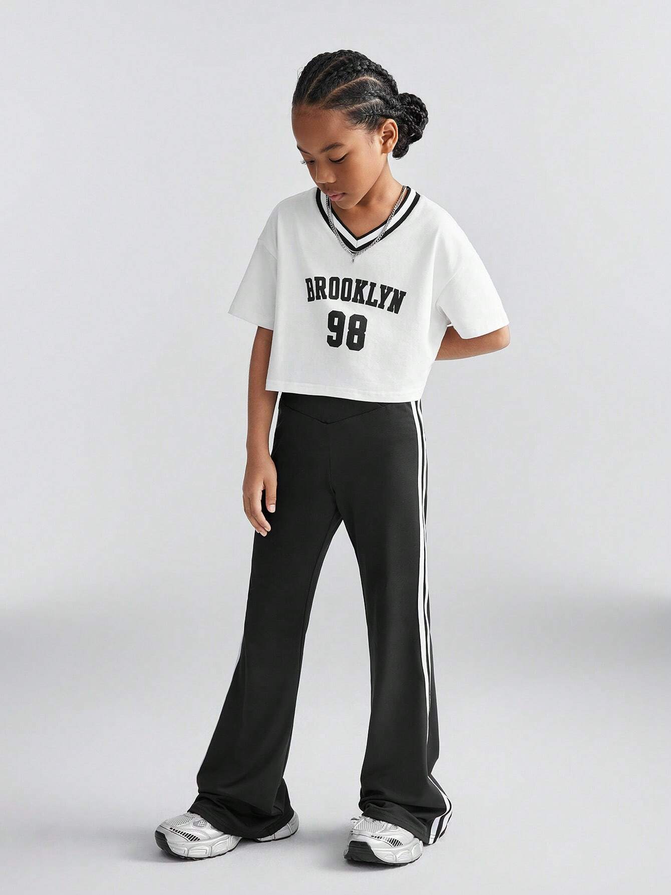 SHEIN Coolane Tween Girl Pants Back To School Clothes Clothes Mommy And Me Garphic Vintage Kpop Y2k Black Flare Leggings Wide Leg Sweatpants Football/Volleyball Thanksgiving Halloween Costume Christmas Sweatpants Spring/Fall/Winter