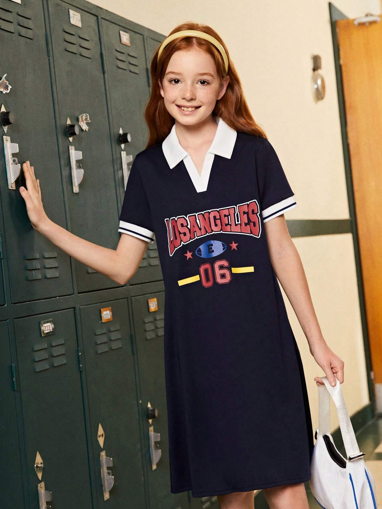 SHEIN Girls’ Casual V-Neck Knit Dress, School Style