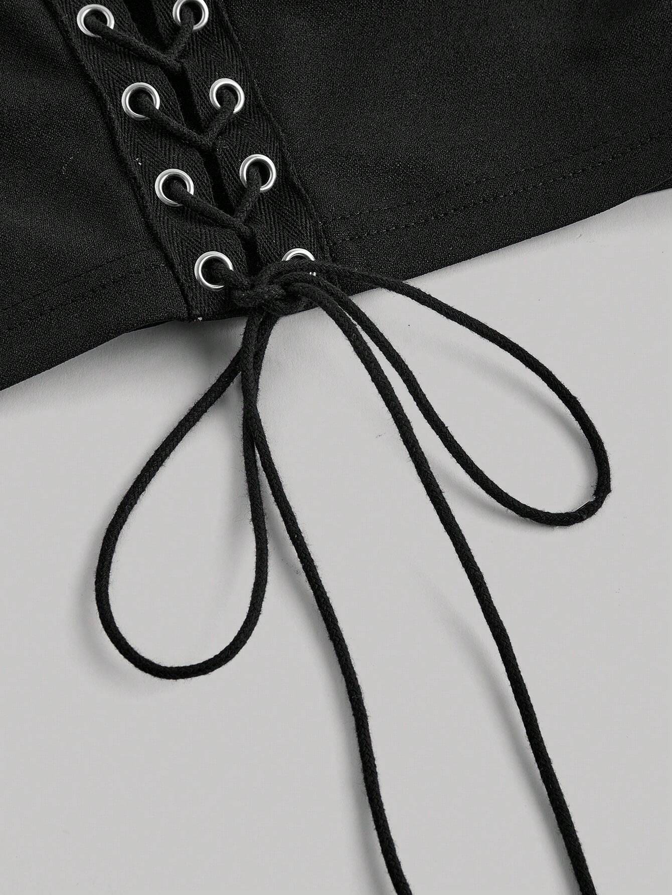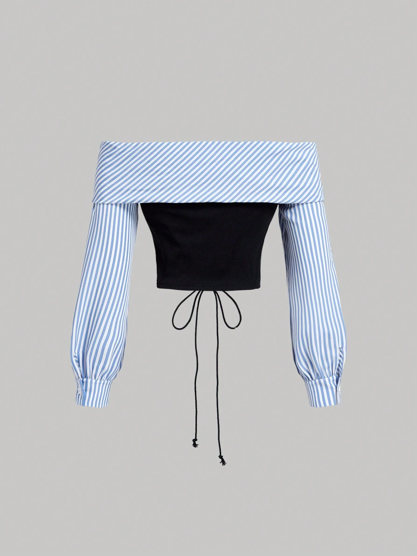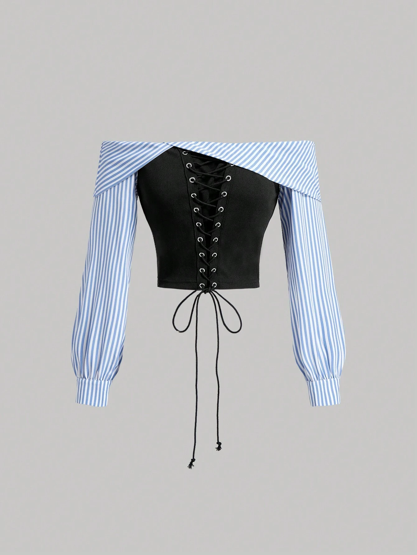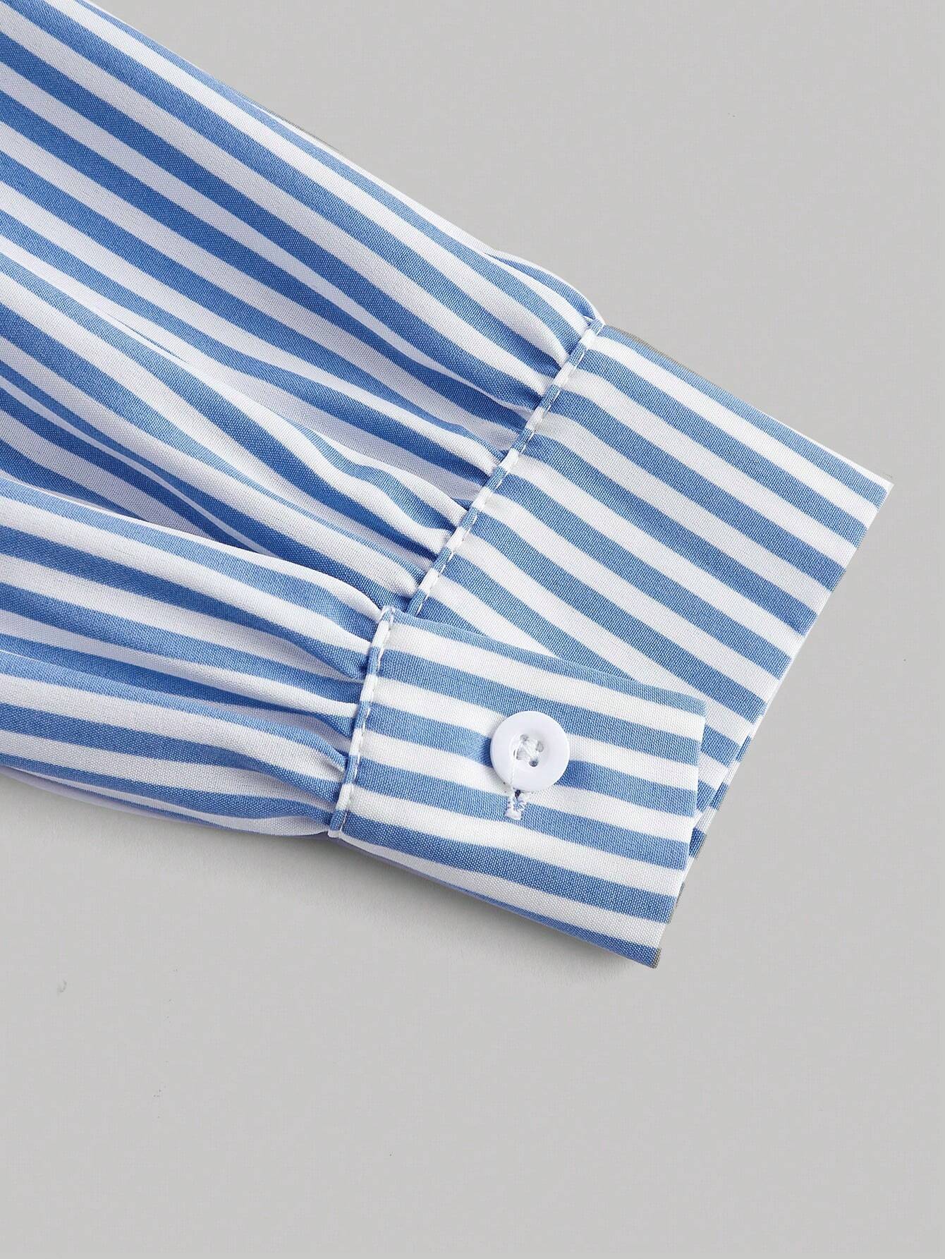 SHEIN MOD Front Eye Lace-Up Striped Contrast Shirt, Autumn Shirt, One-Shoulder Shirt,Birthday Women Outfits,Work Women Blouses,Work Clothes