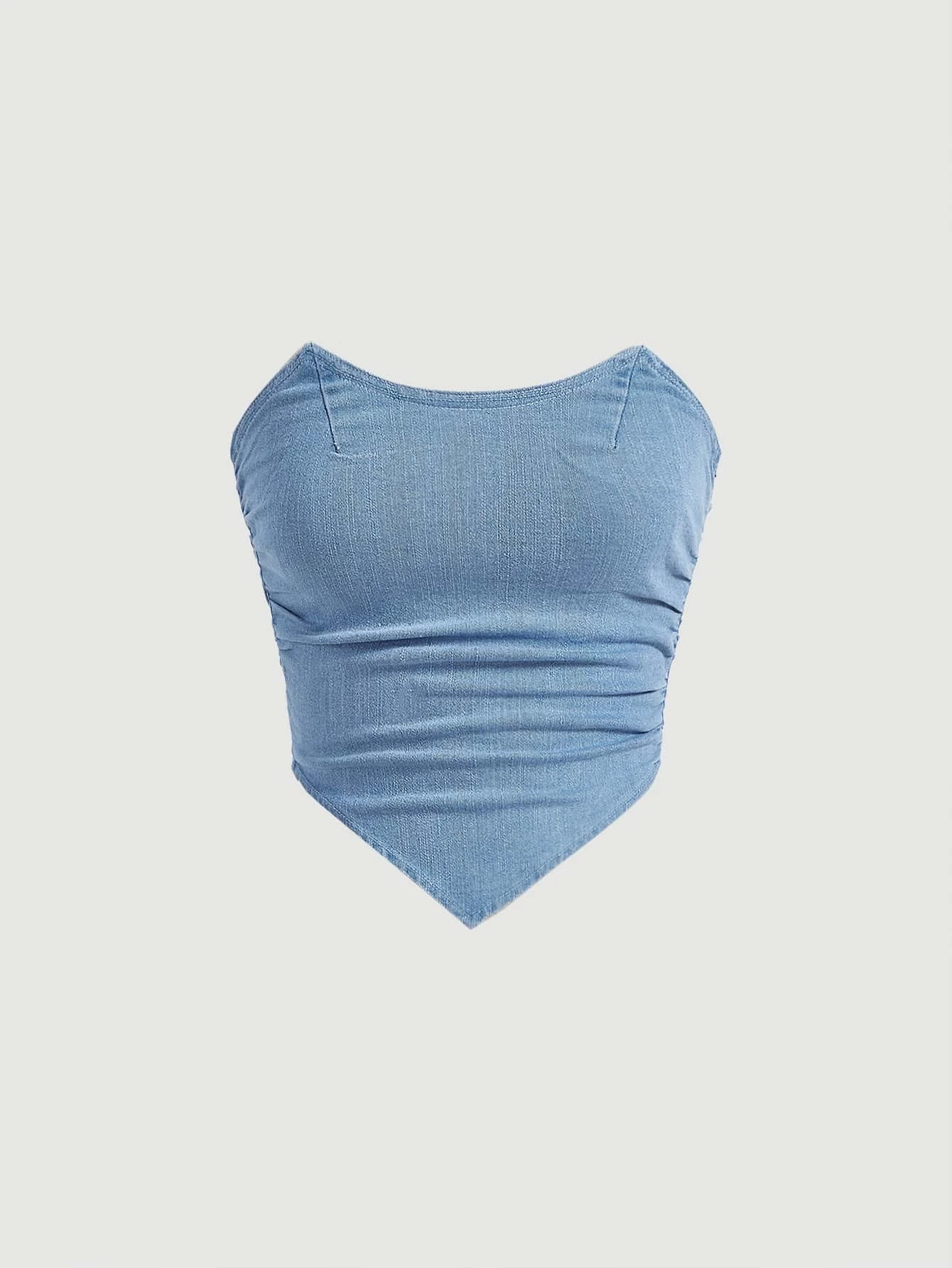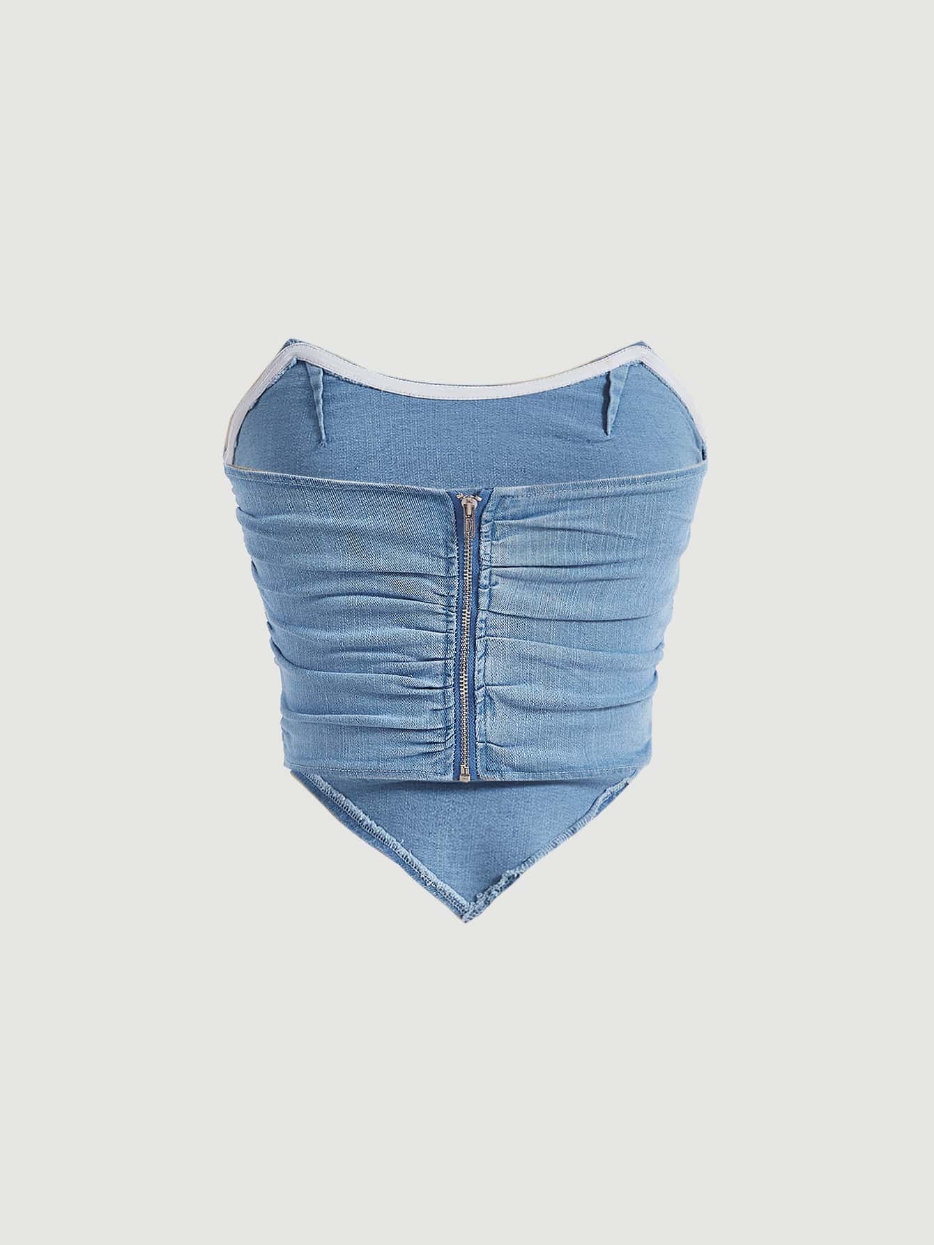 SHEIN MOD Hanky Hem Denim Tube Blue Breast Cup Tight Fit Top
