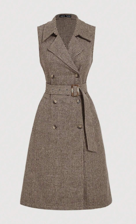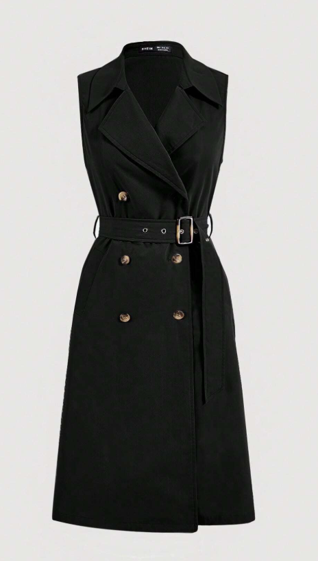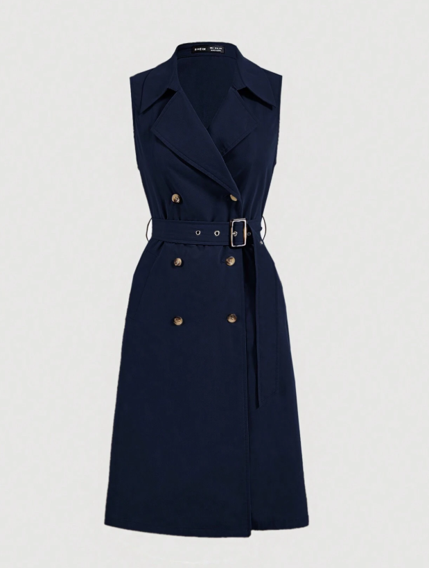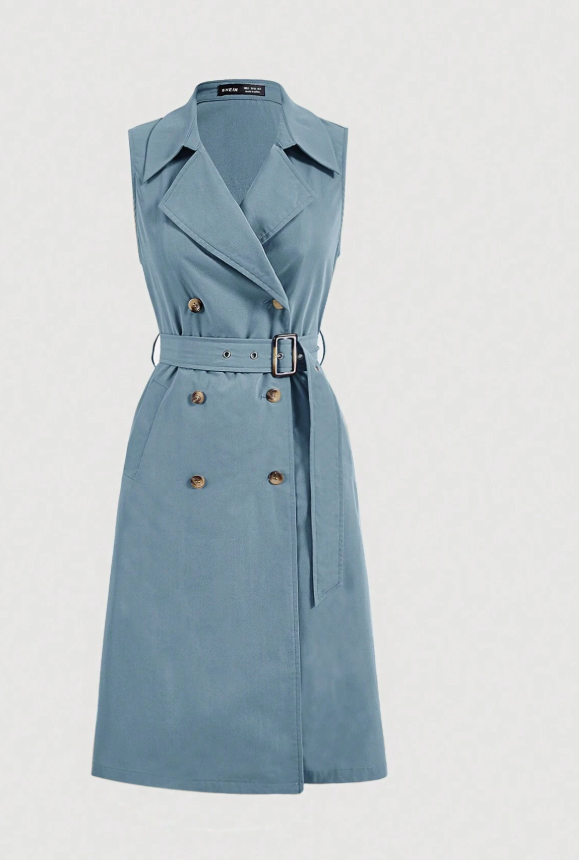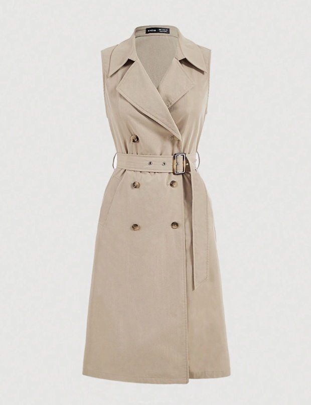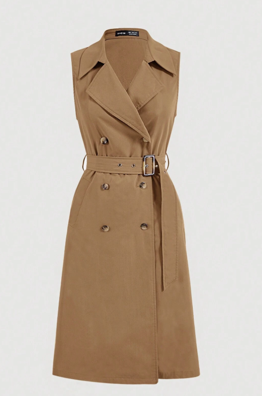 SHEIN MOD Khaki Sleeveless Vintage Waist Cinched Long Windbreaker For Women