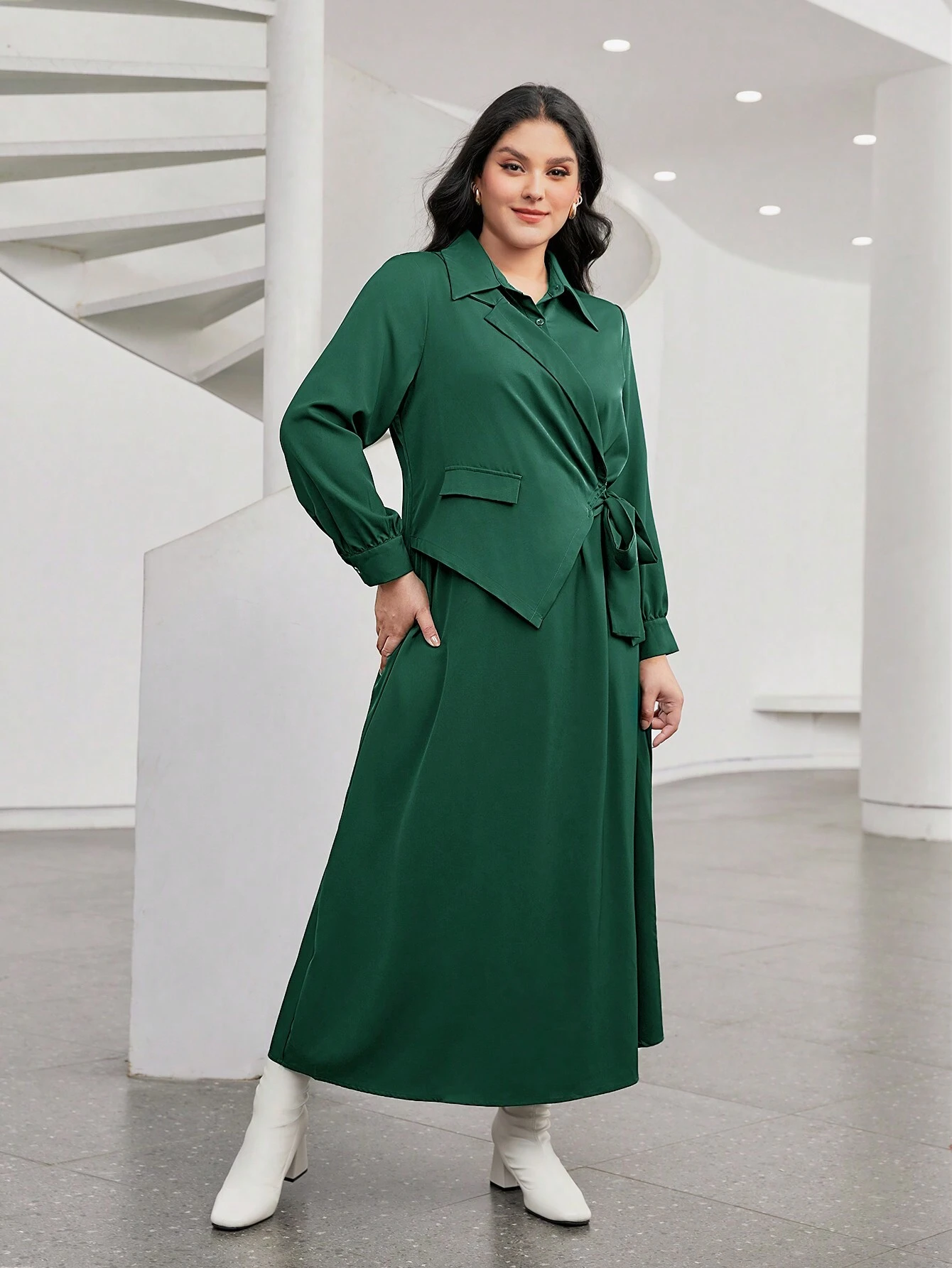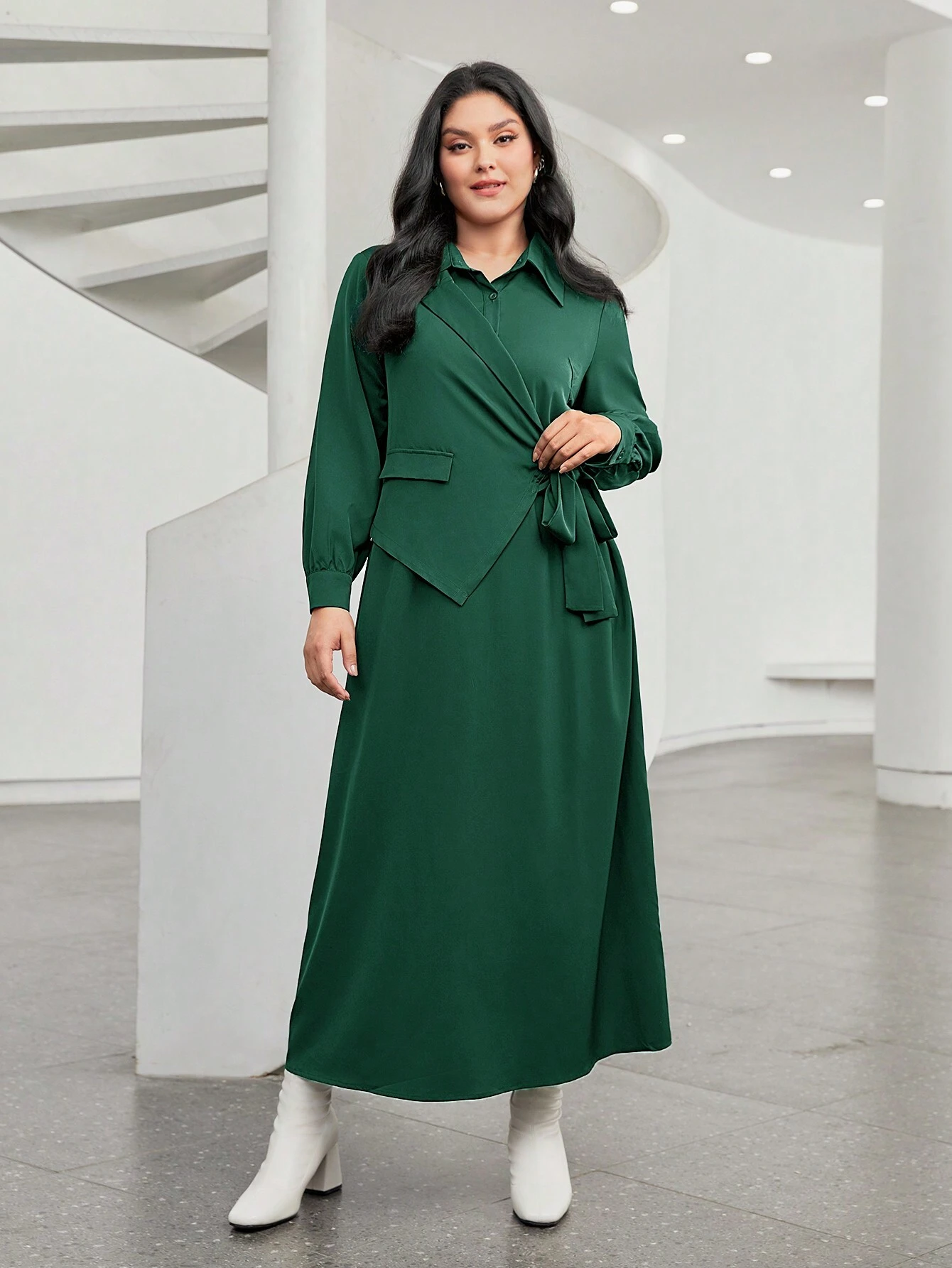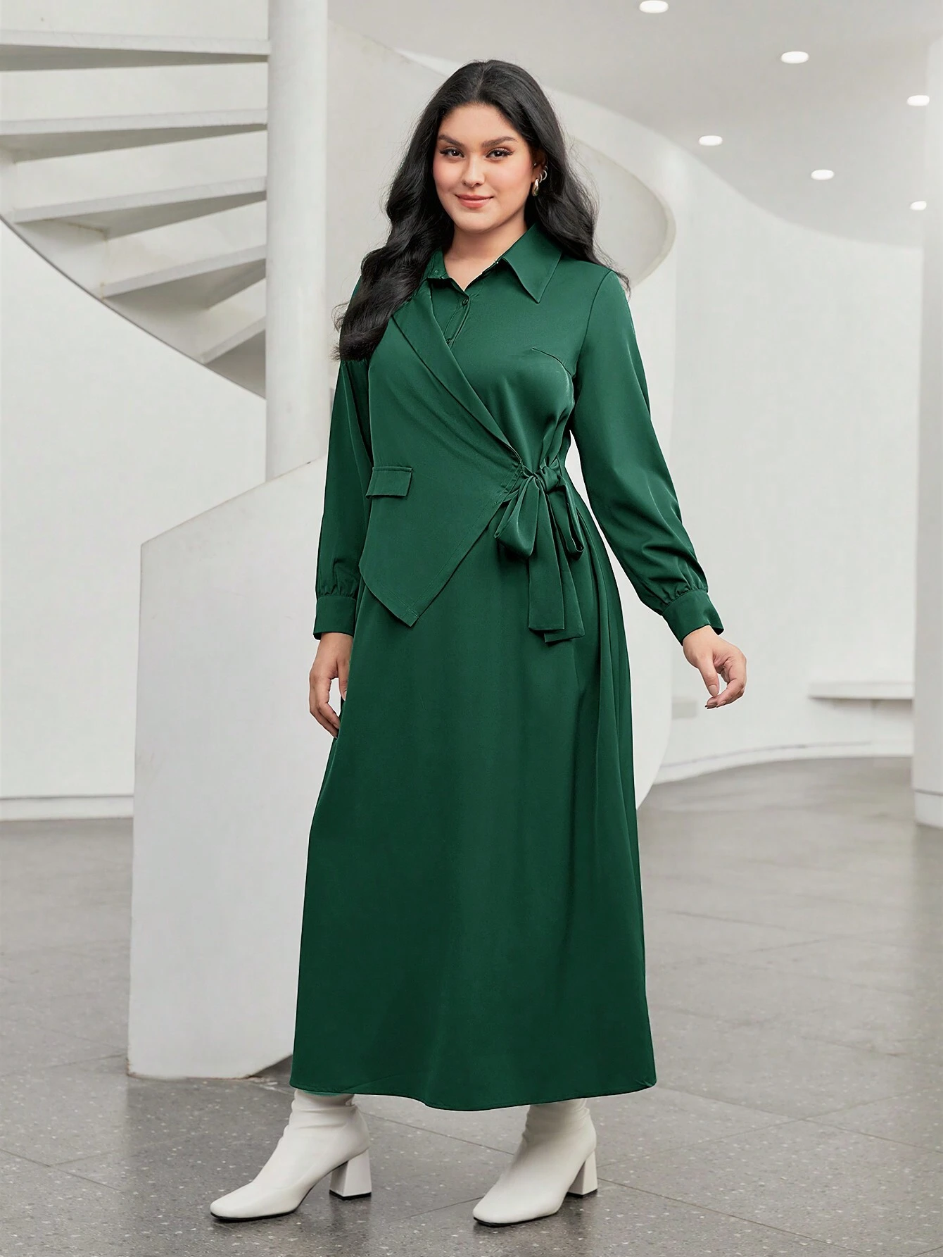 SHEIN Mulvari Plus Solid Wrap Knot Side Dress