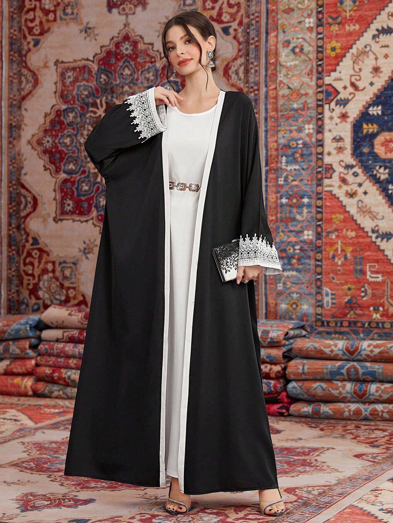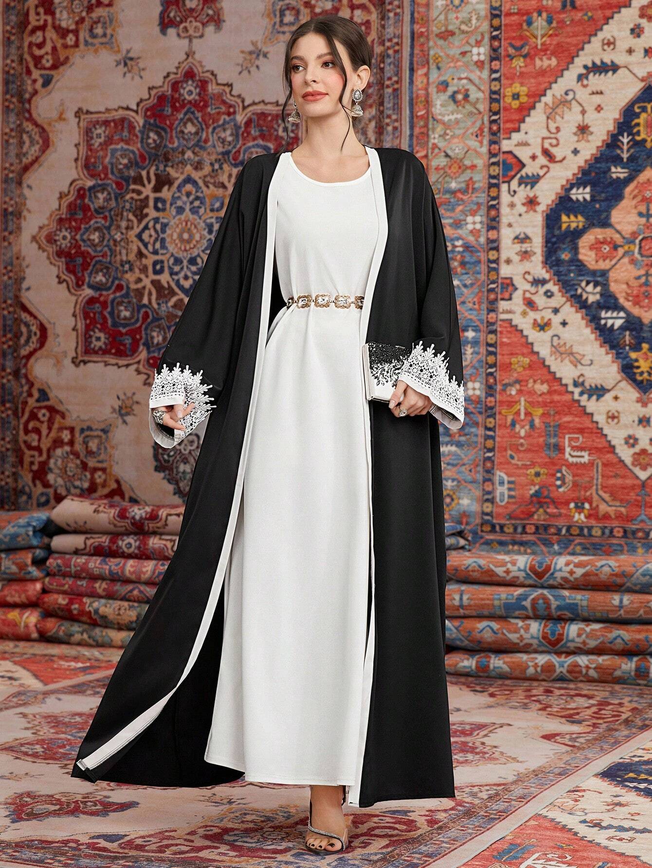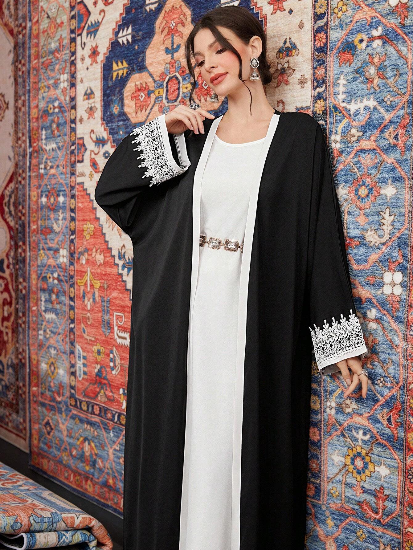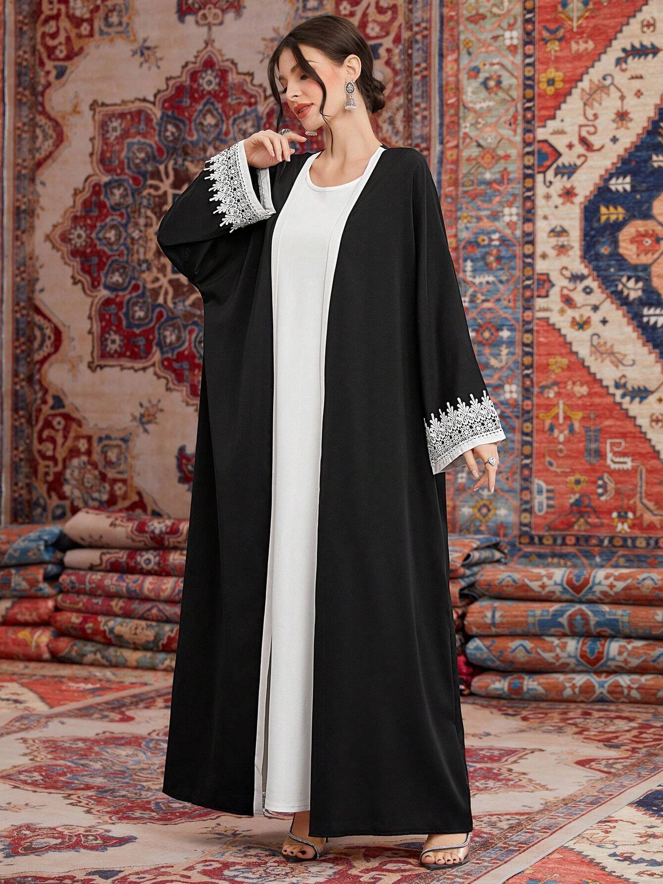 SHEIN Najma Color-Block Decorative Edge Patchwork Soluble Lace Abaya, Muslim Fashion Abaya For Casual/Festival/Gathering/Travel