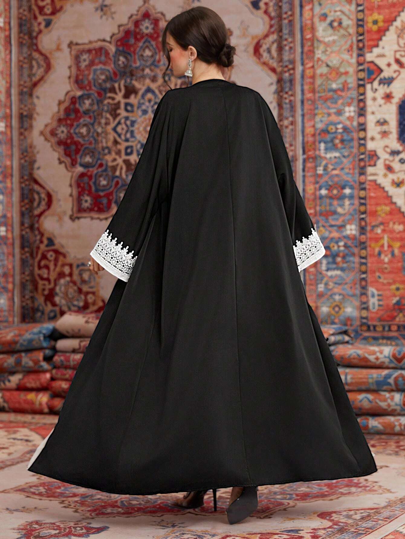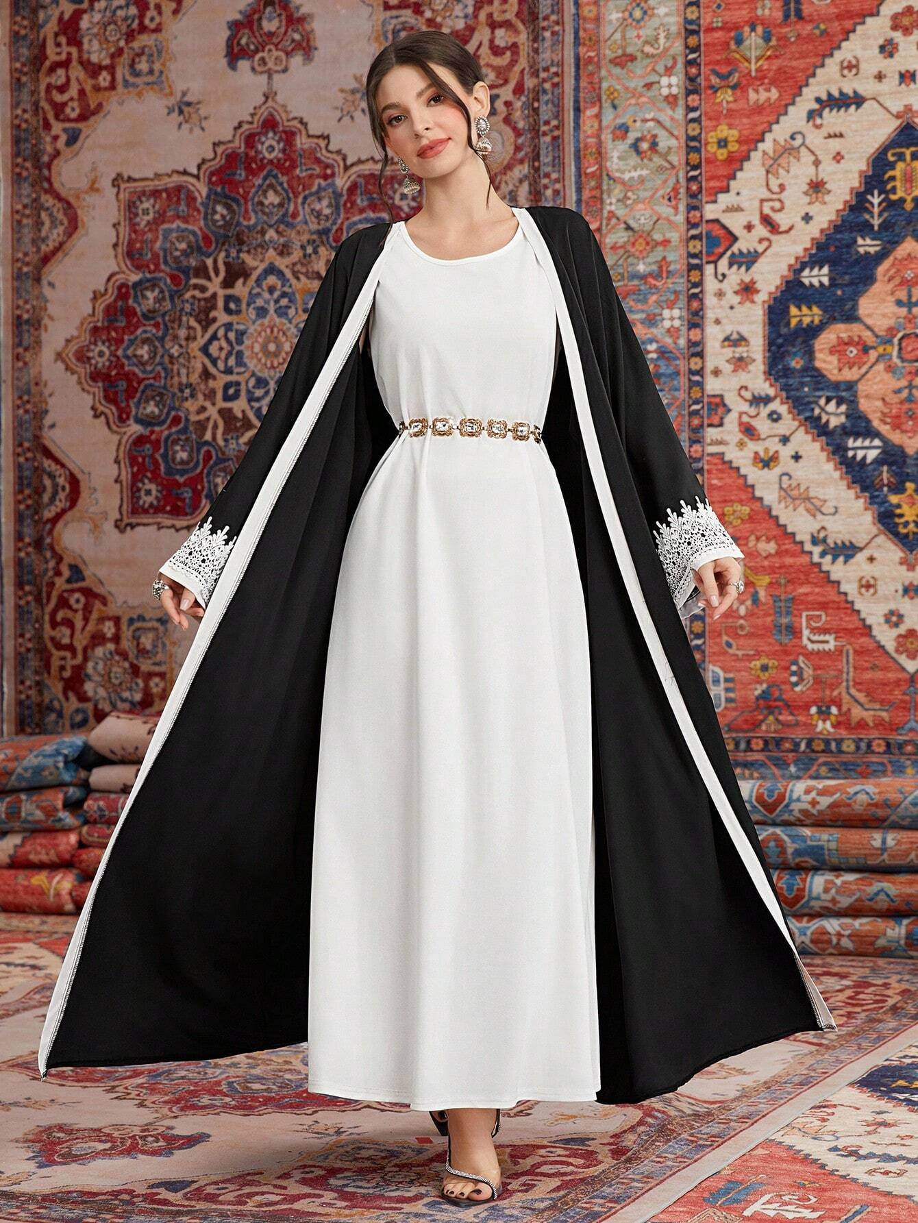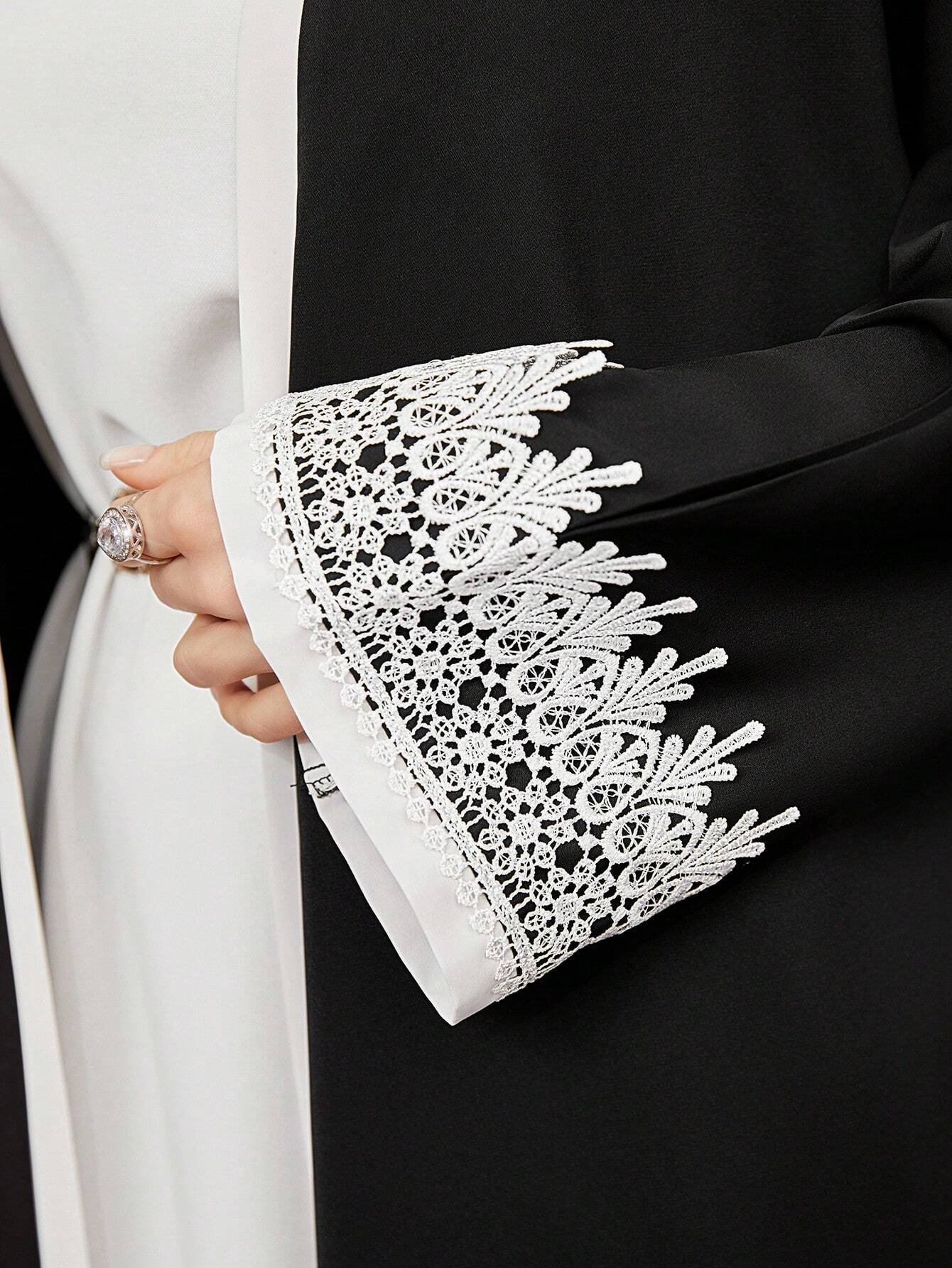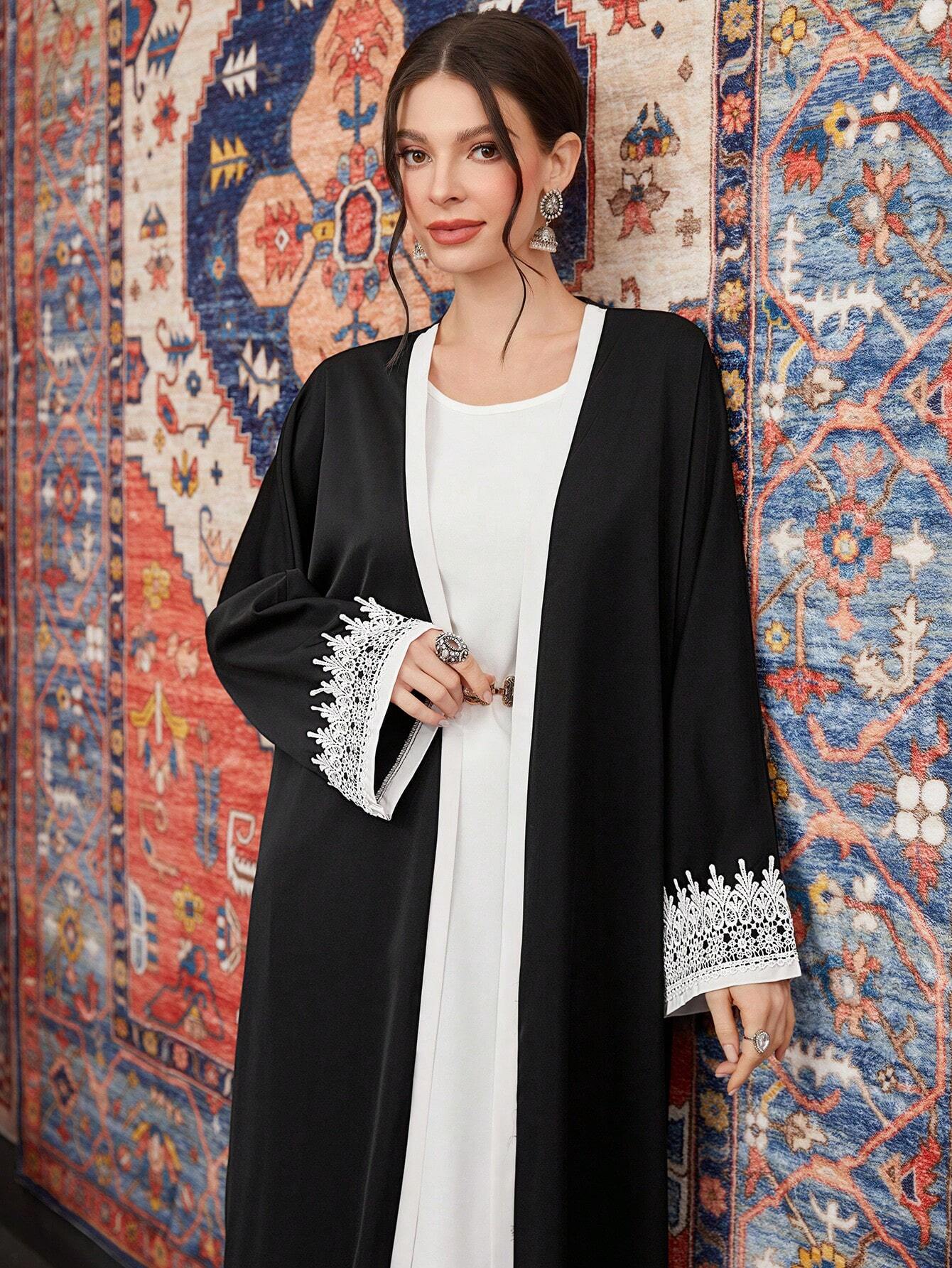 SHEIN Najma Color-Block Decorative Edge Patchwork Soluble Lace Abaya, Muslim Fashion Abaya For Casual/Festival/Gathering/Travel
