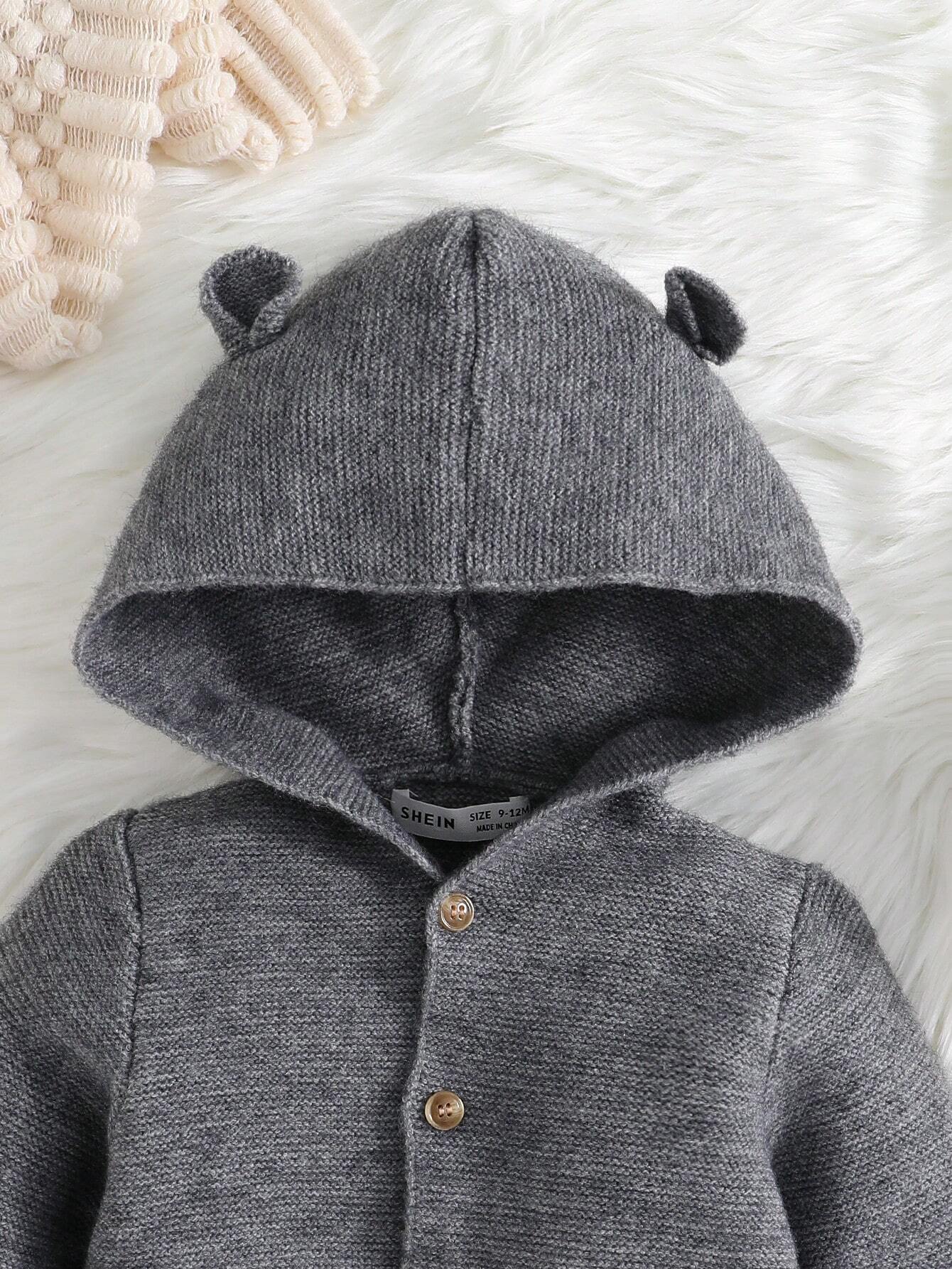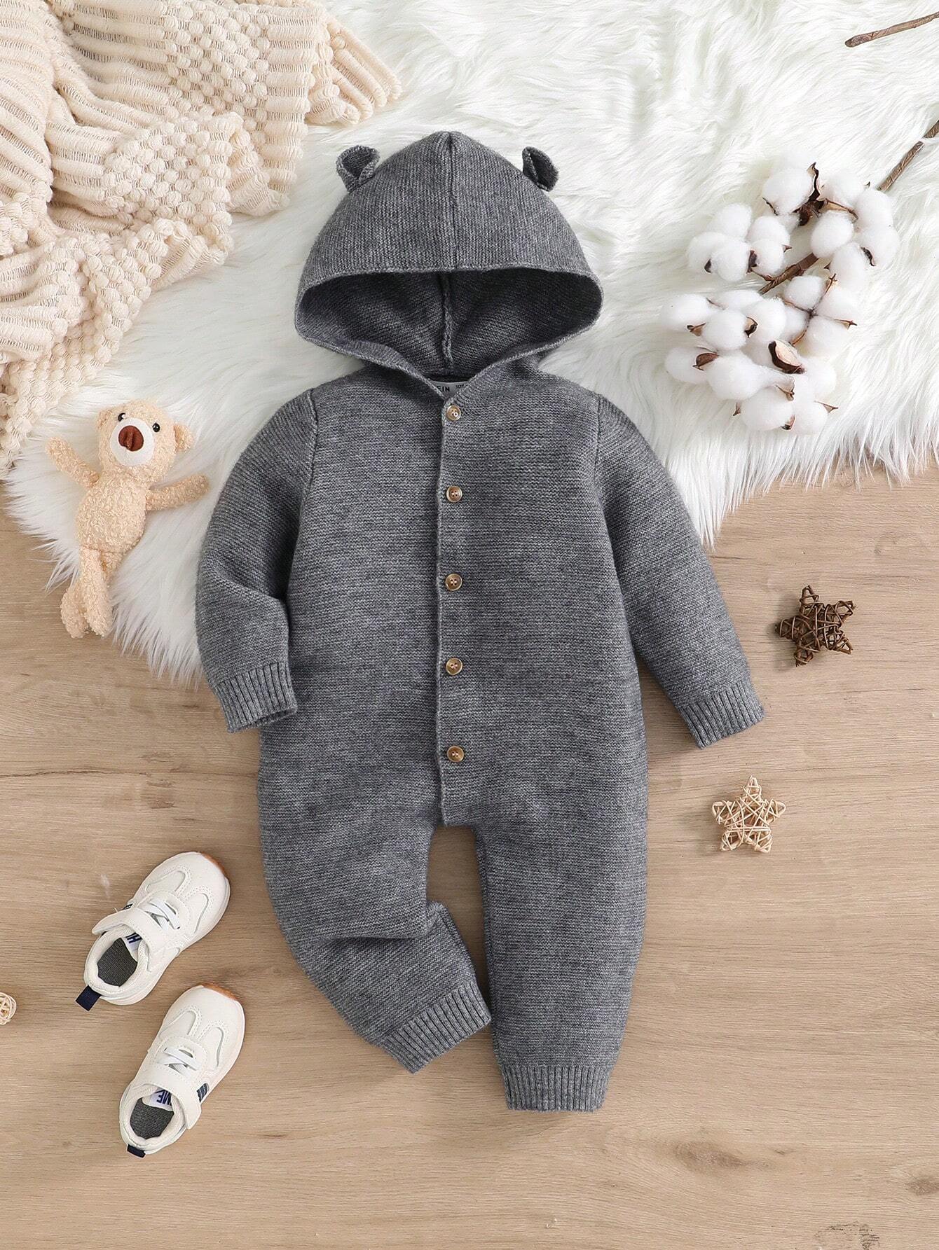 SHEIN Newborn Baby Boy Casual Hooded Cardigan Jumpsuit