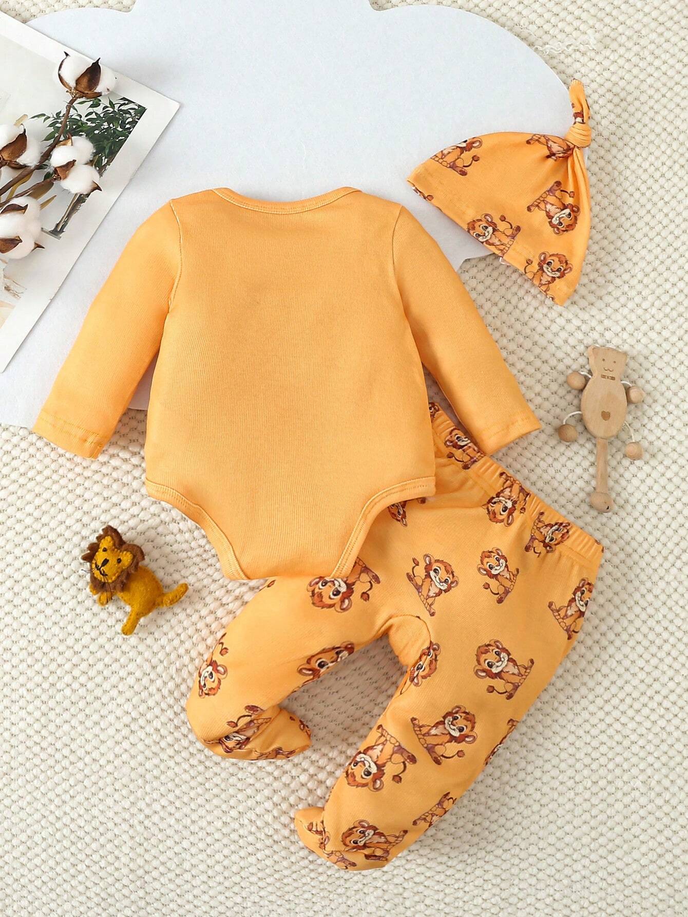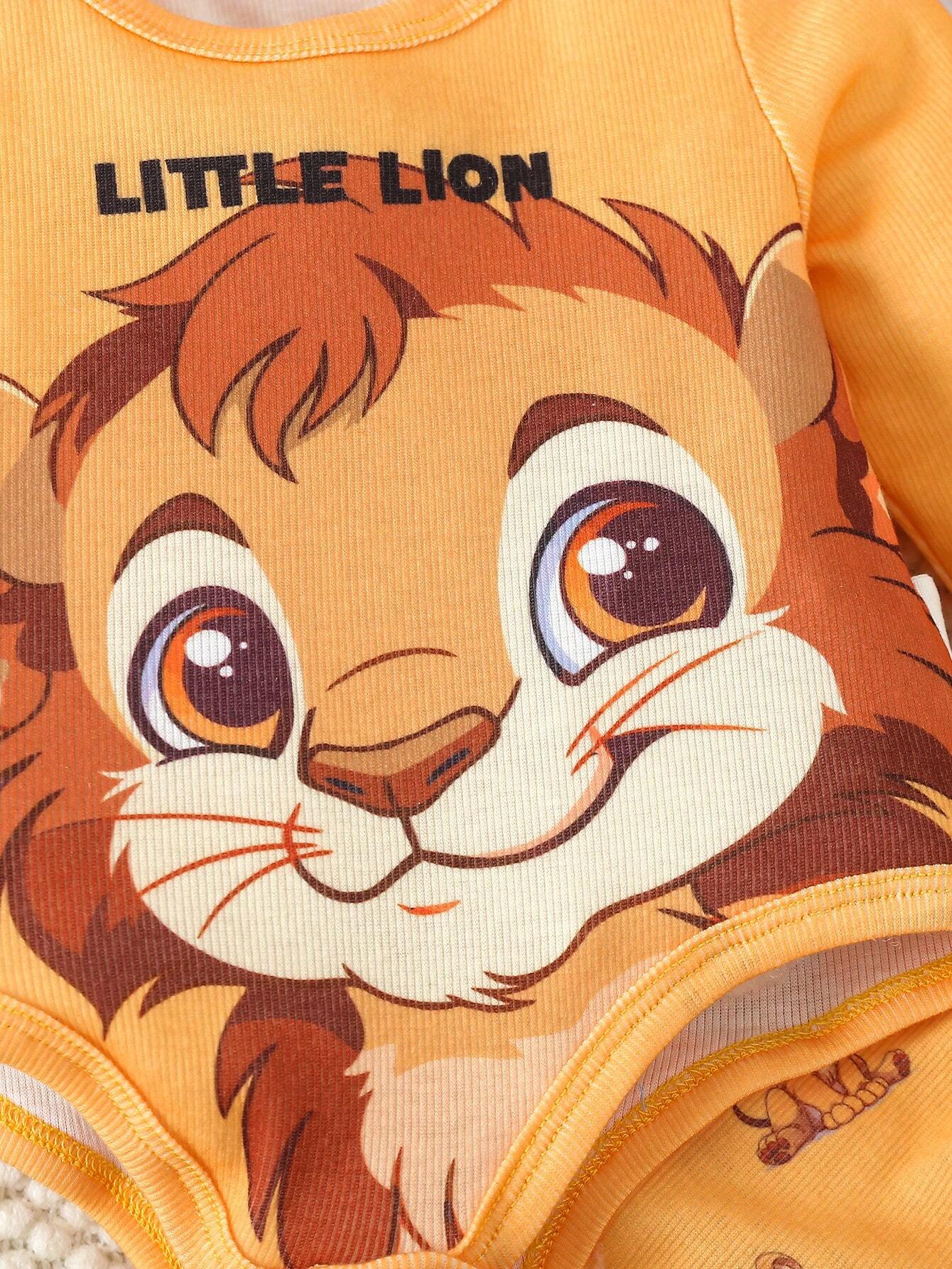 SHEIN Persoplay Kids Baby Boy’s Cute Lion Printed Long Sleeve Romper And Pants Home Wear Set