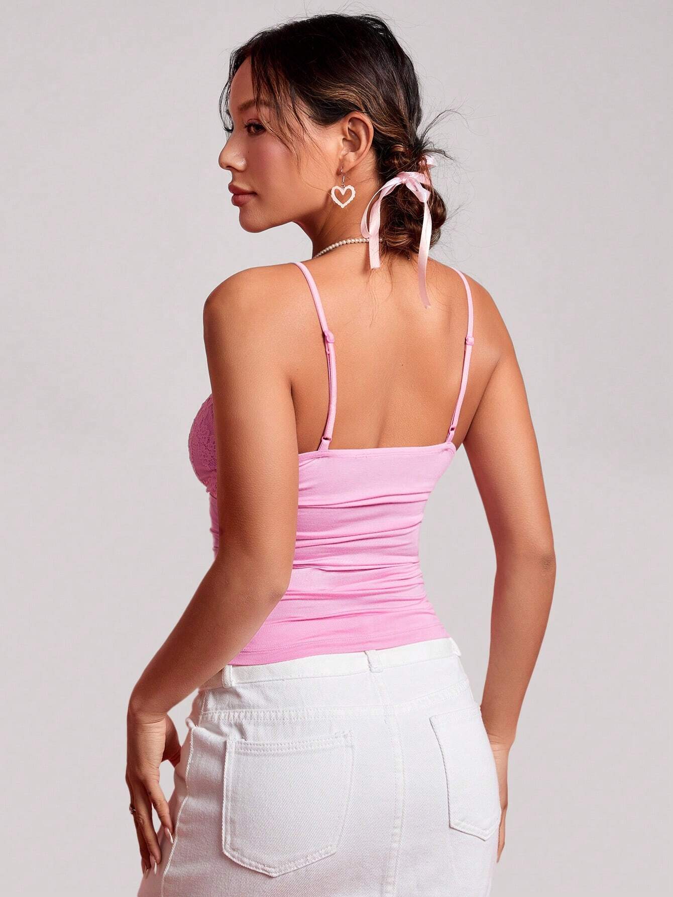 SHEIN PETITE Women’S Patchwork Lace Cami Top