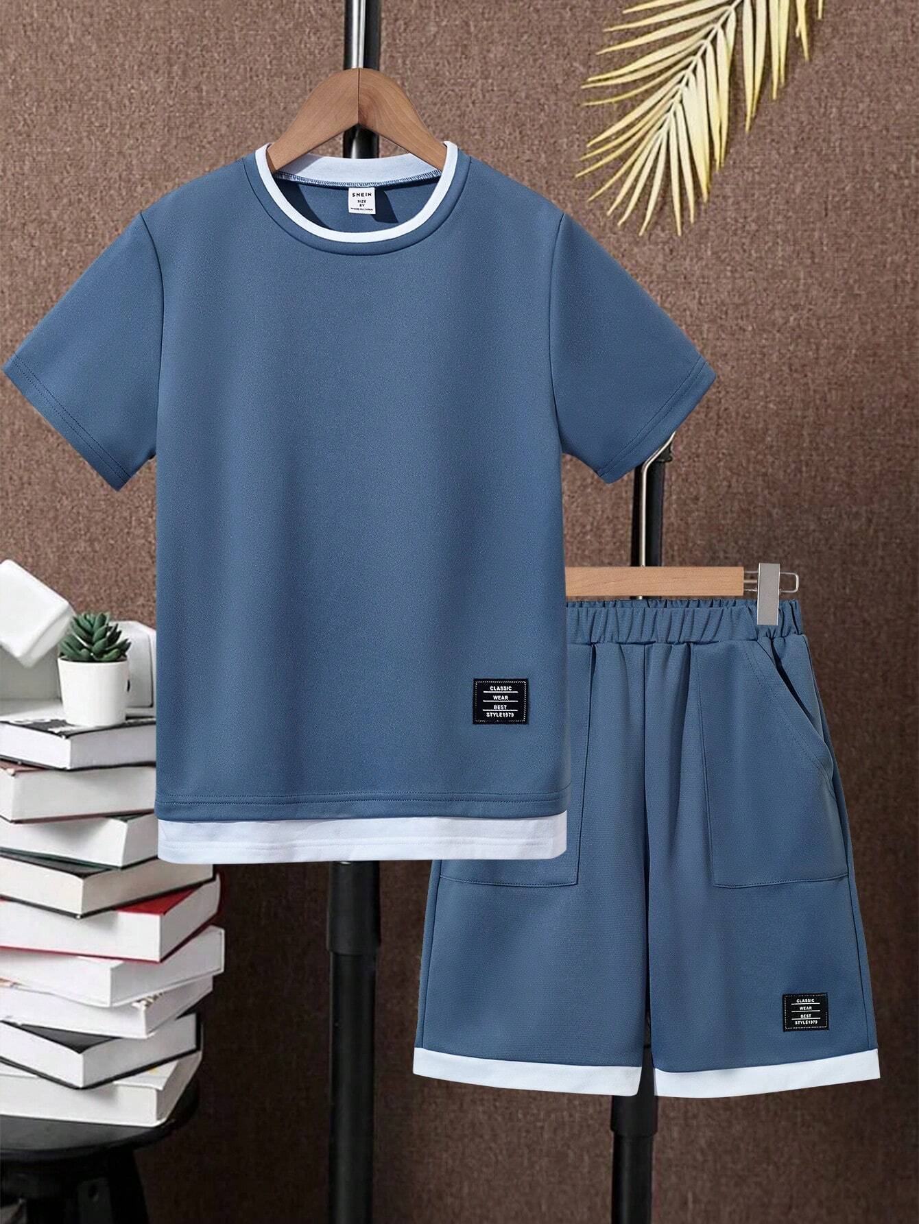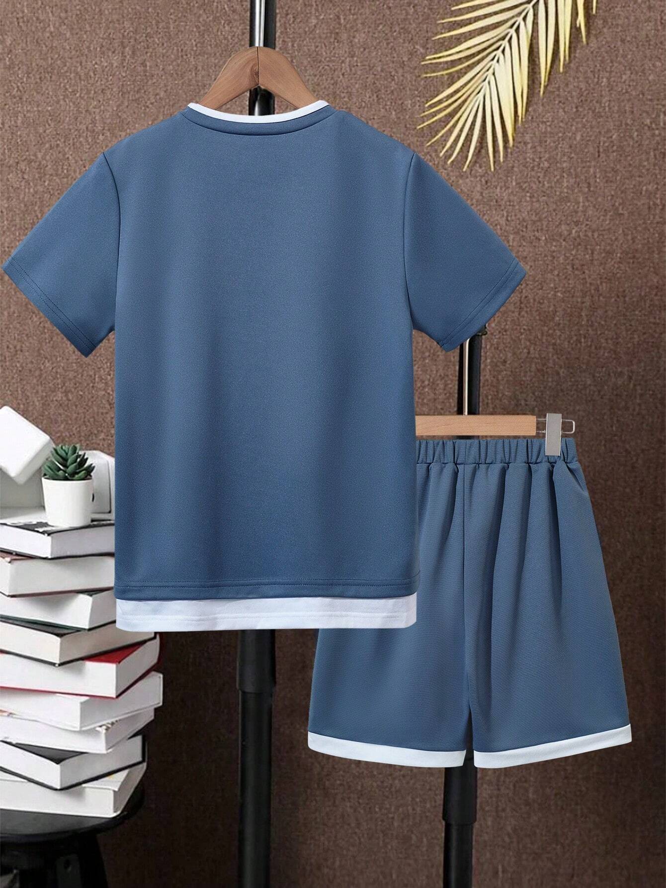 SHEIN Tween Boy Letter Patched Detail 2 In 1 Tee & Shorts