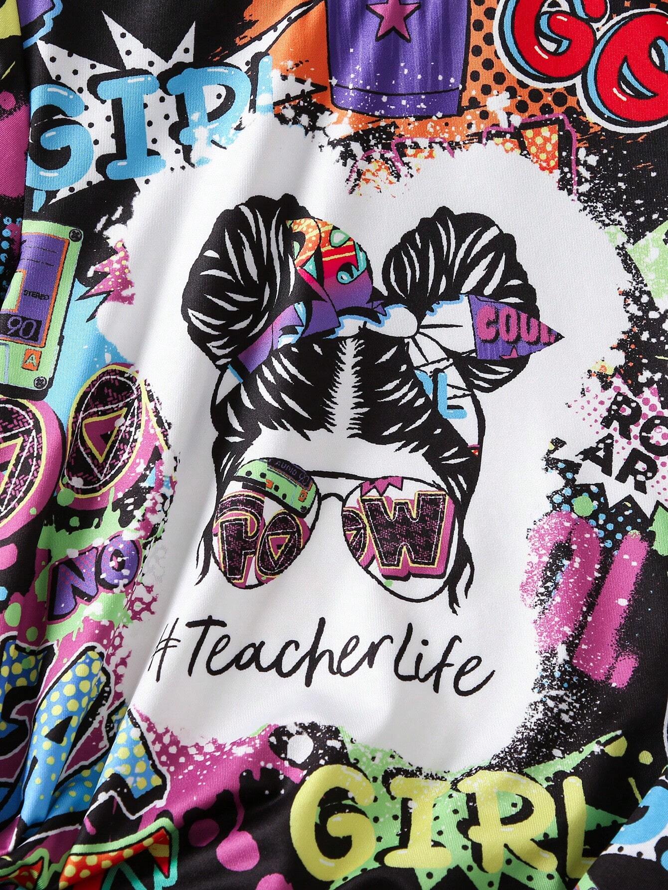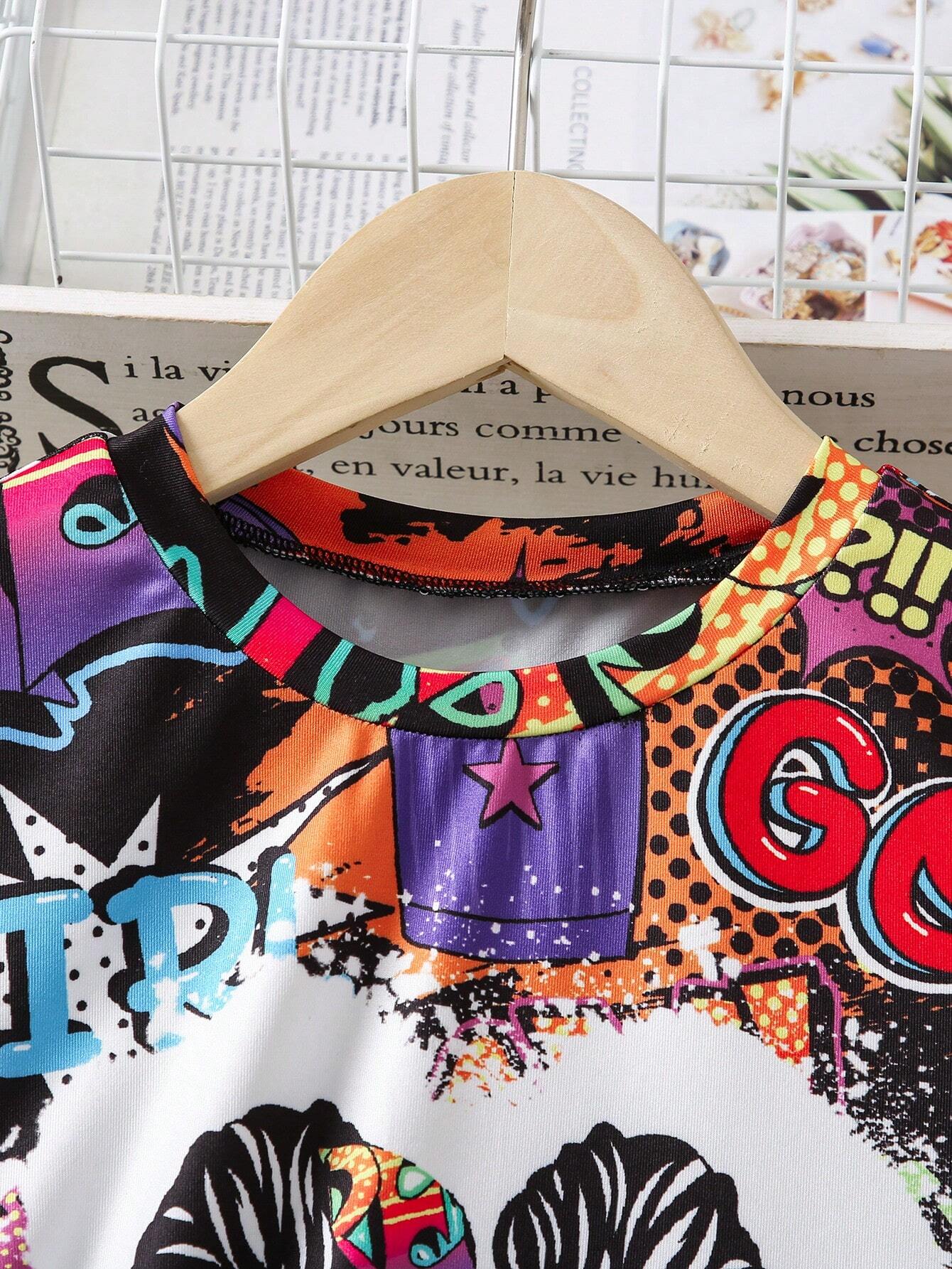 SHEIN Tween Girl Letter & Figure Graphic Tee & Leggings