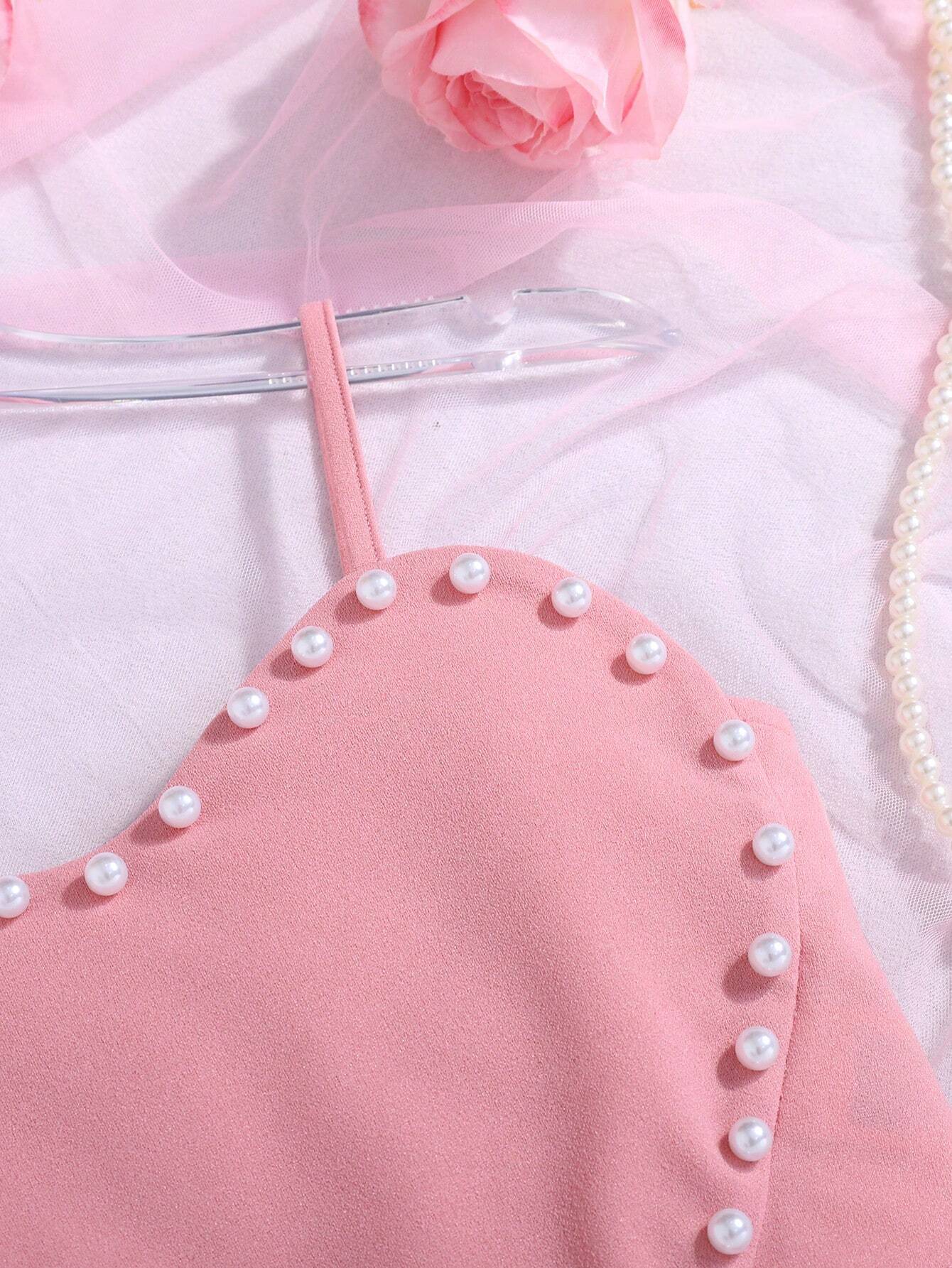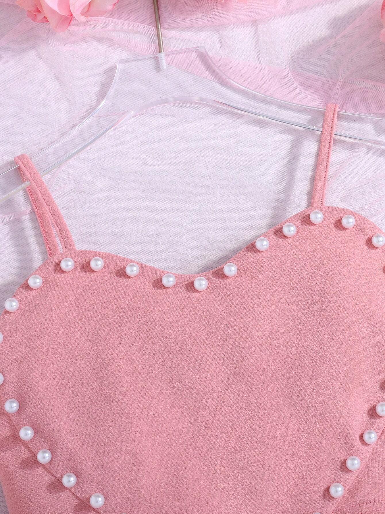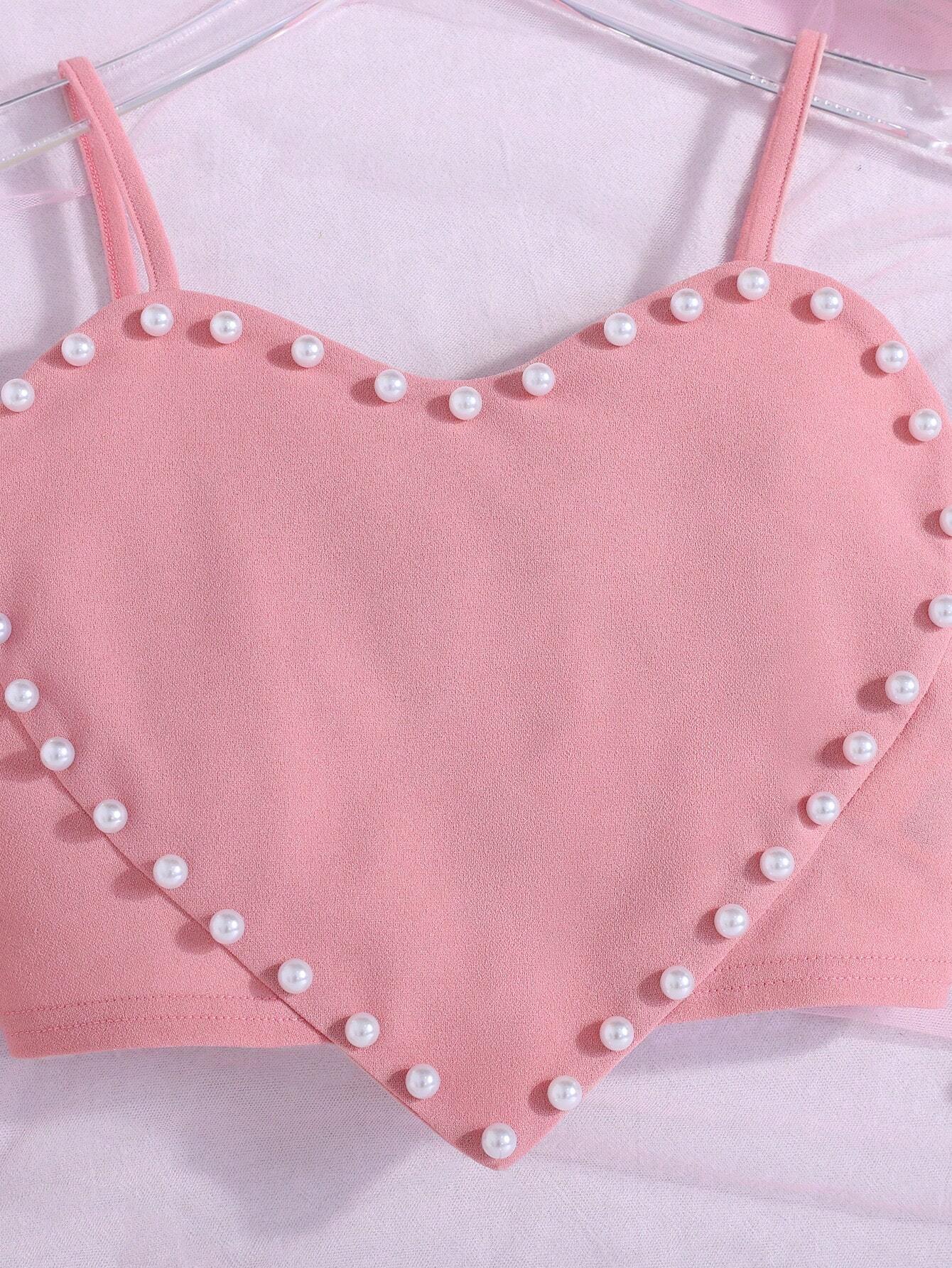 SHEIN Tween Girl’s Slim Heart Shaped Pearl Decorated Cropped Camisole