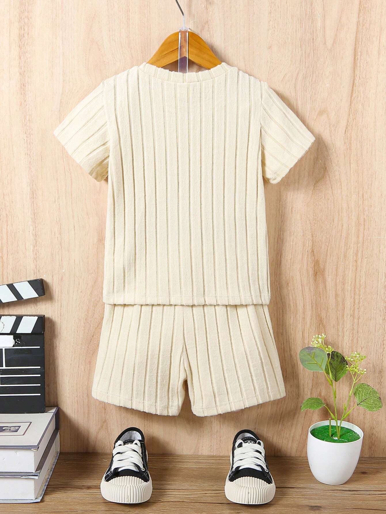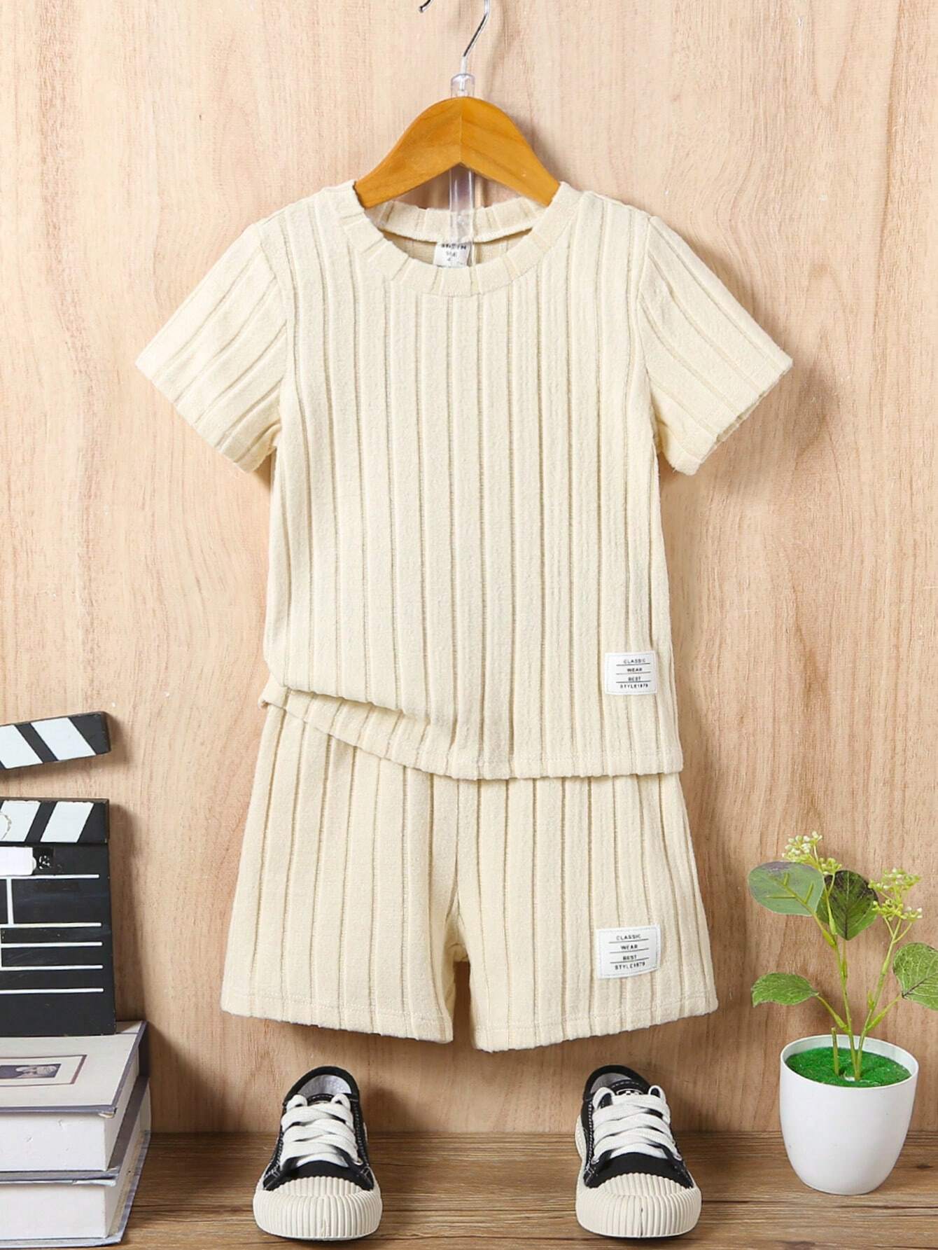 SHEIN Vintaside Kids Young Boy Letter Patched Detail Tee & Shorts
