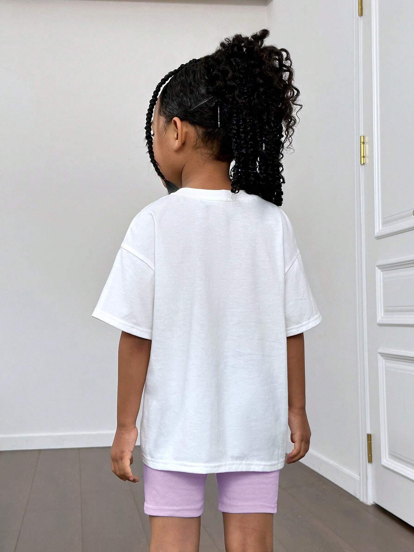 SHEIN Young Girl Daily Casual Knitted Short Sleeve T-Shirt And Shorts Set