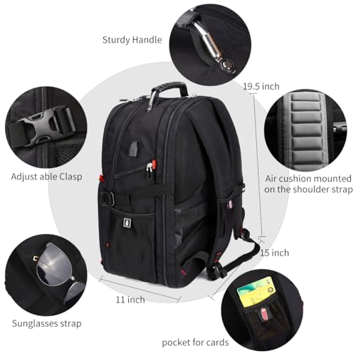 SHRRADOO Extra Large 50L Travel Laptop Backpack with USB Charging Port, College Backpack Airline Approved Business Work Bag Fits 17 Inch Computer for Men Women