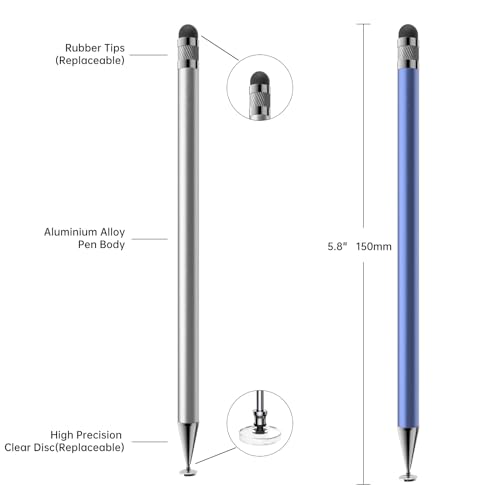 Stylus (5 Pcs), 2-in-1 Stylus Pen for Touch Screen, High Precision and Sensitivity, Suitable for iPhone/ipad/Android Tablets, Compatible with All Touch Screens (Black/White/Blue/Rose Gold/Silver)
