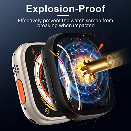 TAURI 2 Pack Hard Case Designed for Apple Watch Ultra 2 (2024) / Ultra 1 49mm, with 9H [HD Clear] Tempered Glass Screen Protector, [Full Protection] Slim Cover for iWatch 49mm – Black