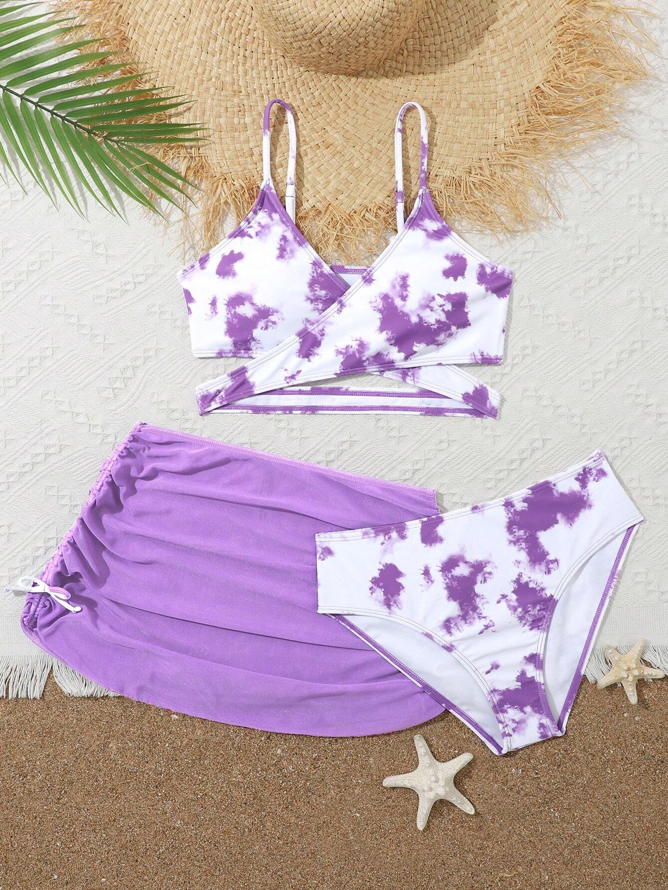 Teen Girls’ Tie Dye Bikini Set (3 Pieces)