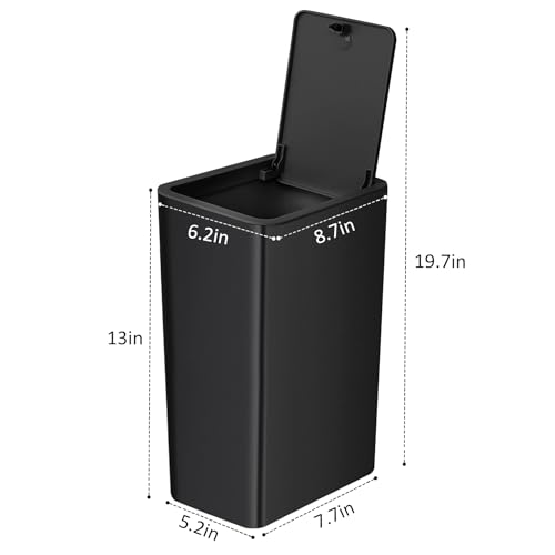 TIPGO Bathroom Trash Can with Lid, 10 Liter/ 2.6 Gallon Slim Garbage Can, Small Trash Bin Waste Basket with Pop-Up Lid for Kitchen, Bedroom, Living Room, Office (Black)