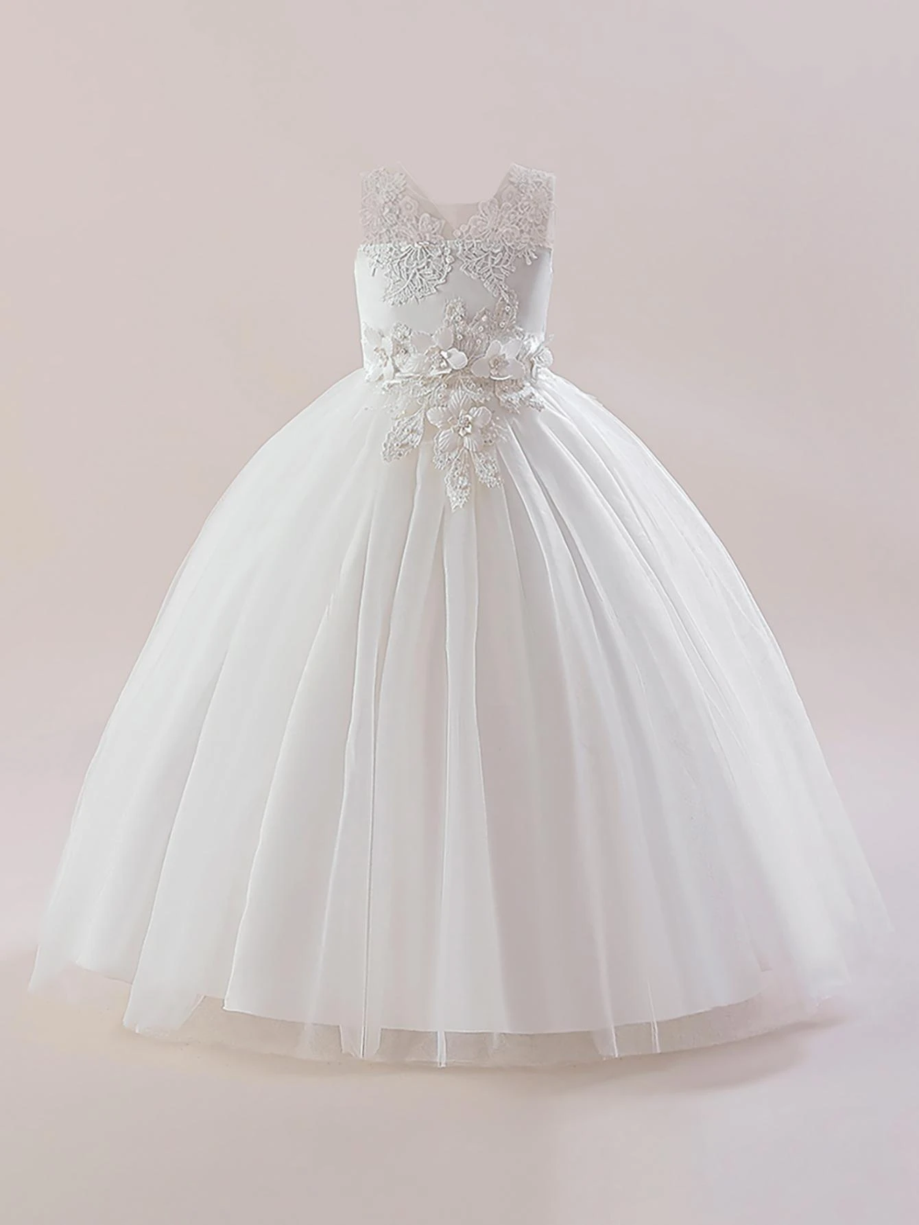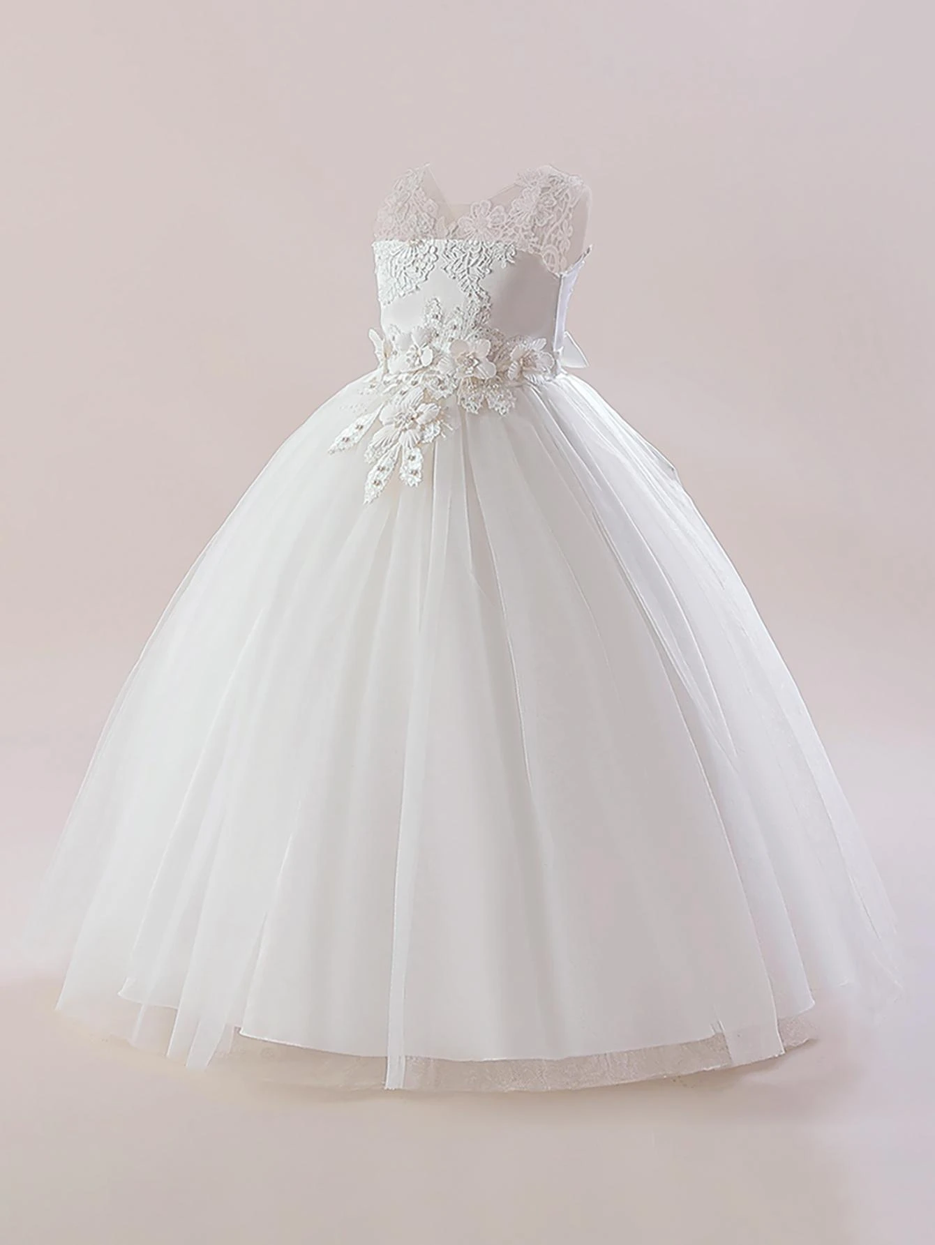 Tween Girl Contrast Mesh Bow Decor Dress, Ideal For Performances, Hosting And Parties With Gorgeous, Elegant Design