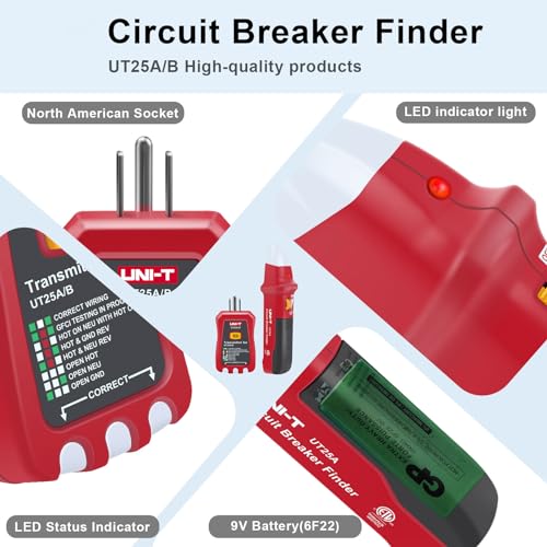 UNI-T AC Circuit Breaker Finder and Tracer Tool Kit with Electrical Integrated GFCI Outlet Tester, AC 90-120V USA Plug + Adjustable Sensitivity Beeper Indicattion+ Flashing LED Light – UT25A