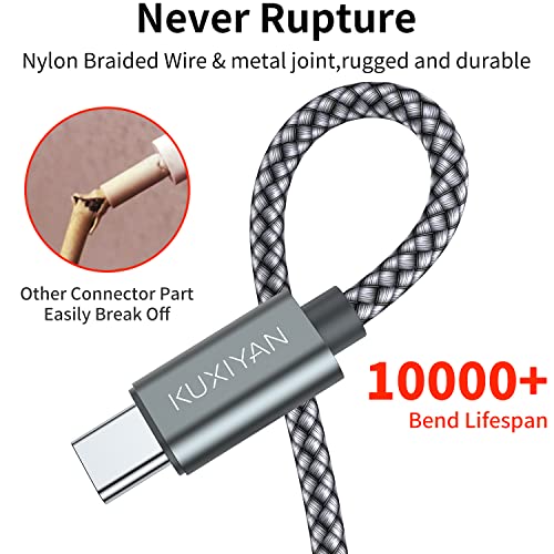 USB Type C Cable,(2-Pack 3FT) USB C Charger Cable Car Carplay Cable Nylon Braided Fast Charging Sync Cord Compatible iPhone 16/15 Pro Max Samsung Galaxy S10 S9 S8 Plus,Note 9 8,Google Pixel 2 XL(Gray)