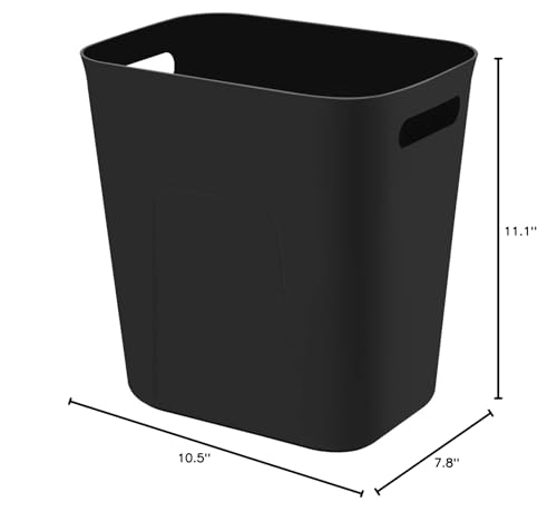 UUJOLY Plastic Small Trash Can Wastebasket, Garbage Container Basket for Bathrooms, Laundry Room, Kitchens, Offices, Kids Rooms, Dorms, 3.5 Gallon, Black