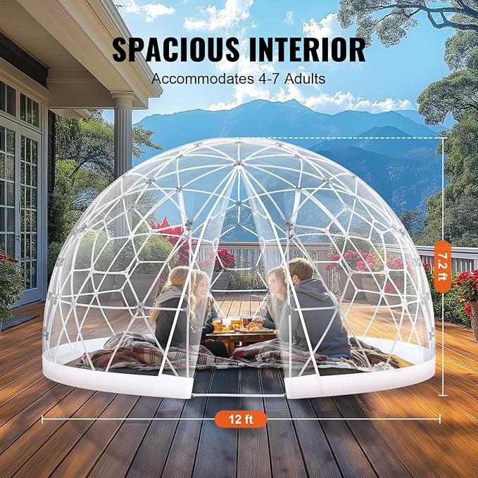 VEVOR Garden Dome Igloo Tent House, Dome Tent, Upgraded Garden Igloo with PVC Transparent Cover and Window, Waterproof Outdoor Geodesic Dome Camping Shelter for Patio, Dining Backyard, Party