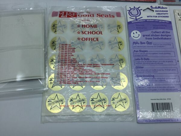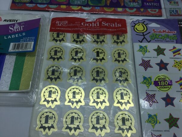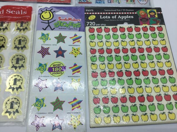 Vintage & Current Teacher Reward Stickers Lot Gold Seals Stars Apples New School